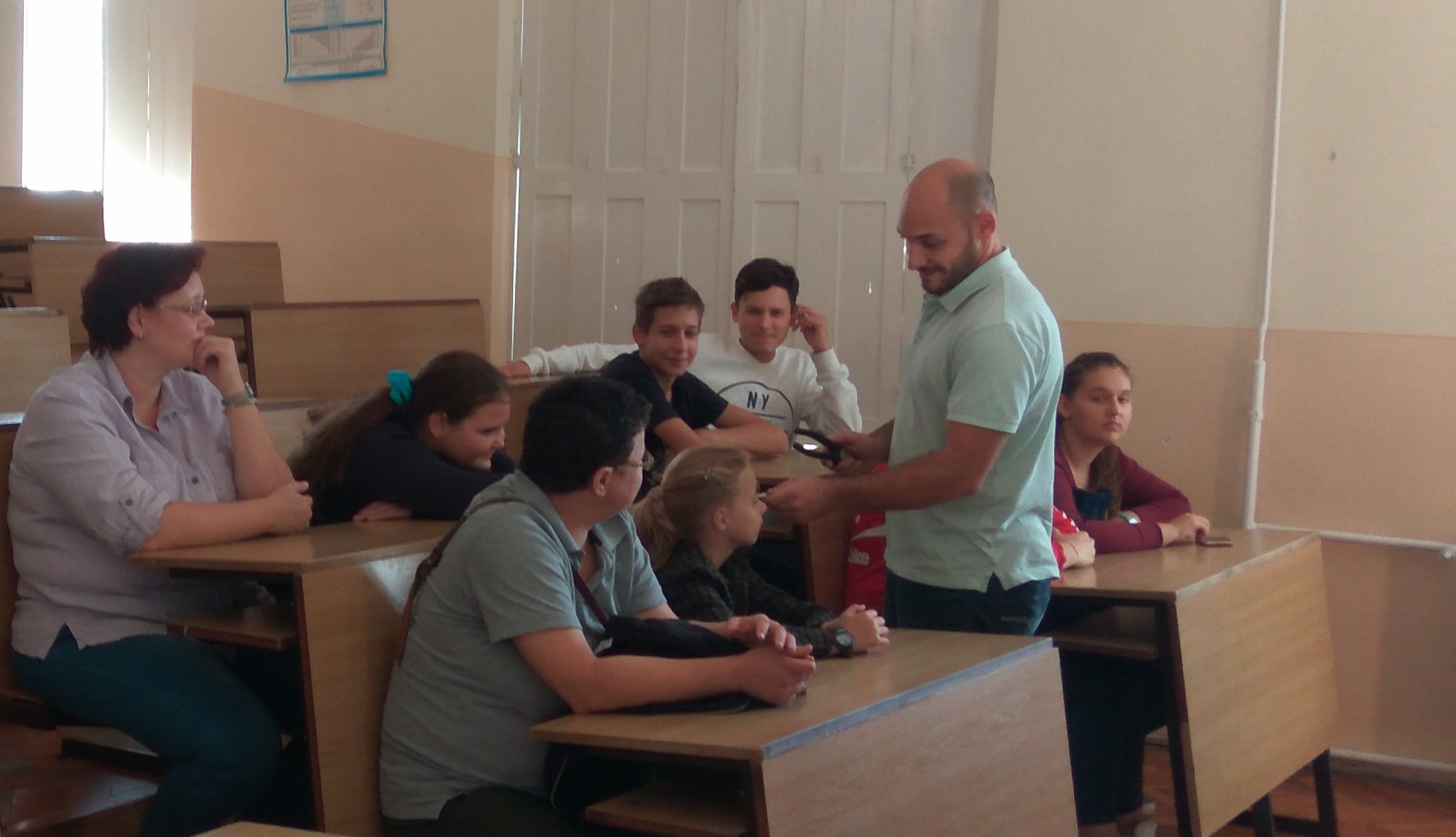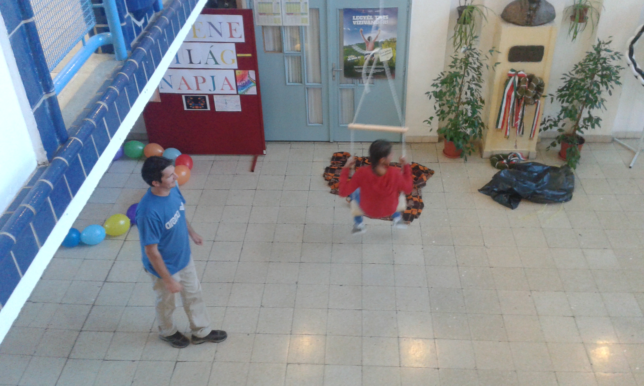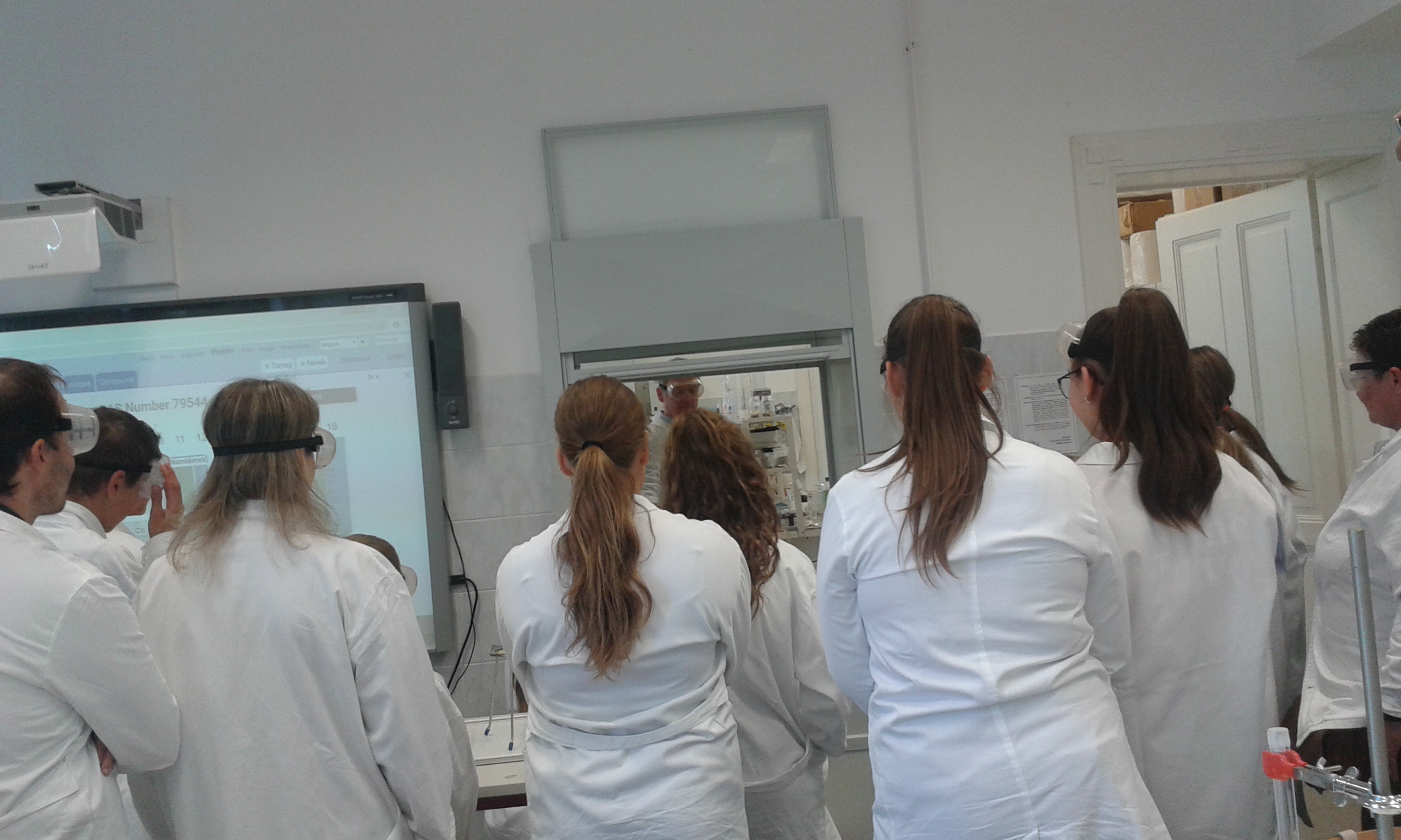 Az aulában bemutatott kísérletek szünetekben is látogathatók voltak. A  programok sikeréért sokat tettek laboránsaink Kovácsné Esztergálos Rita és Palatinus Ákos, valamint reál tagozatos diákjaink is segítették a kísérletezőket.