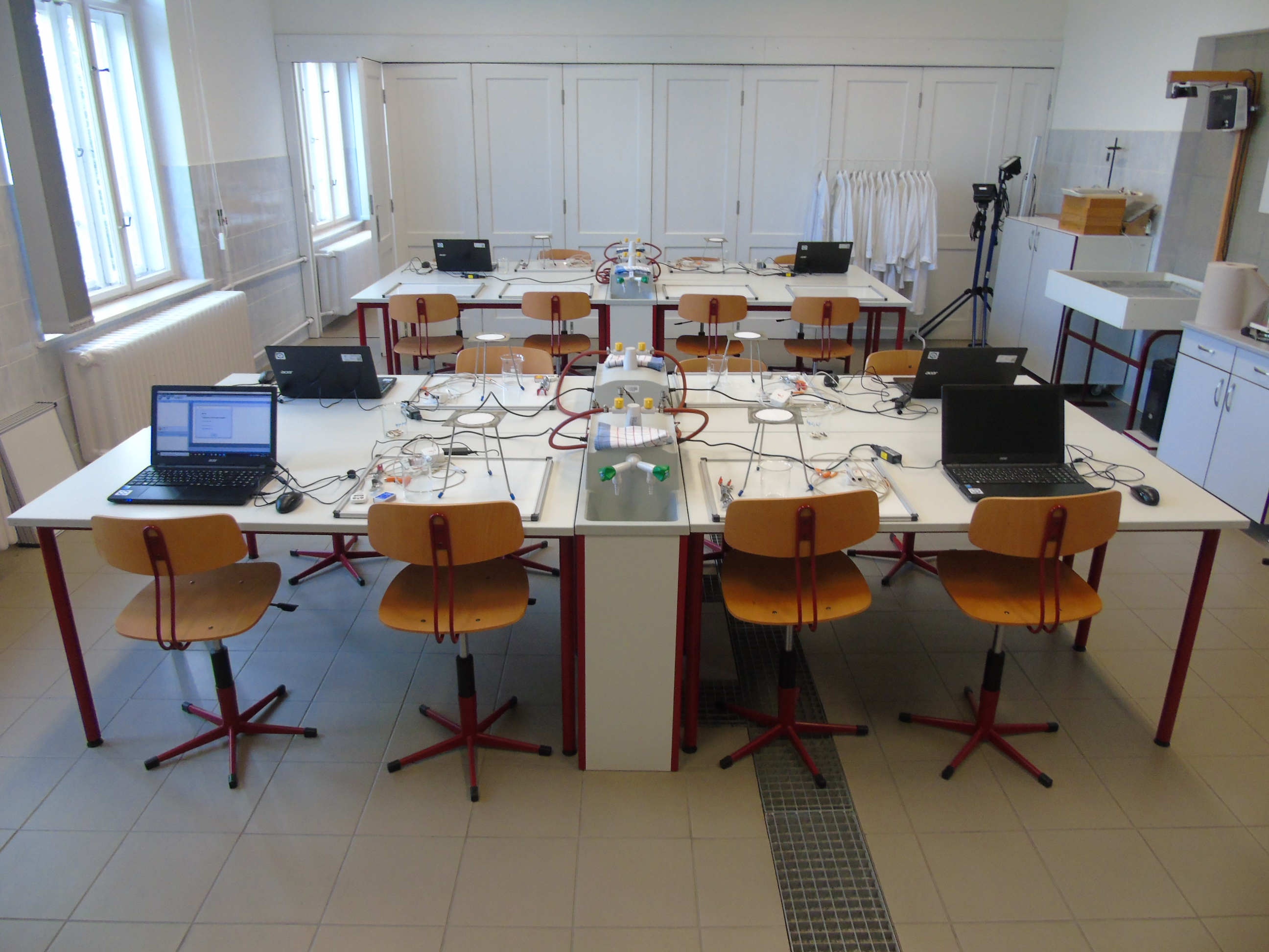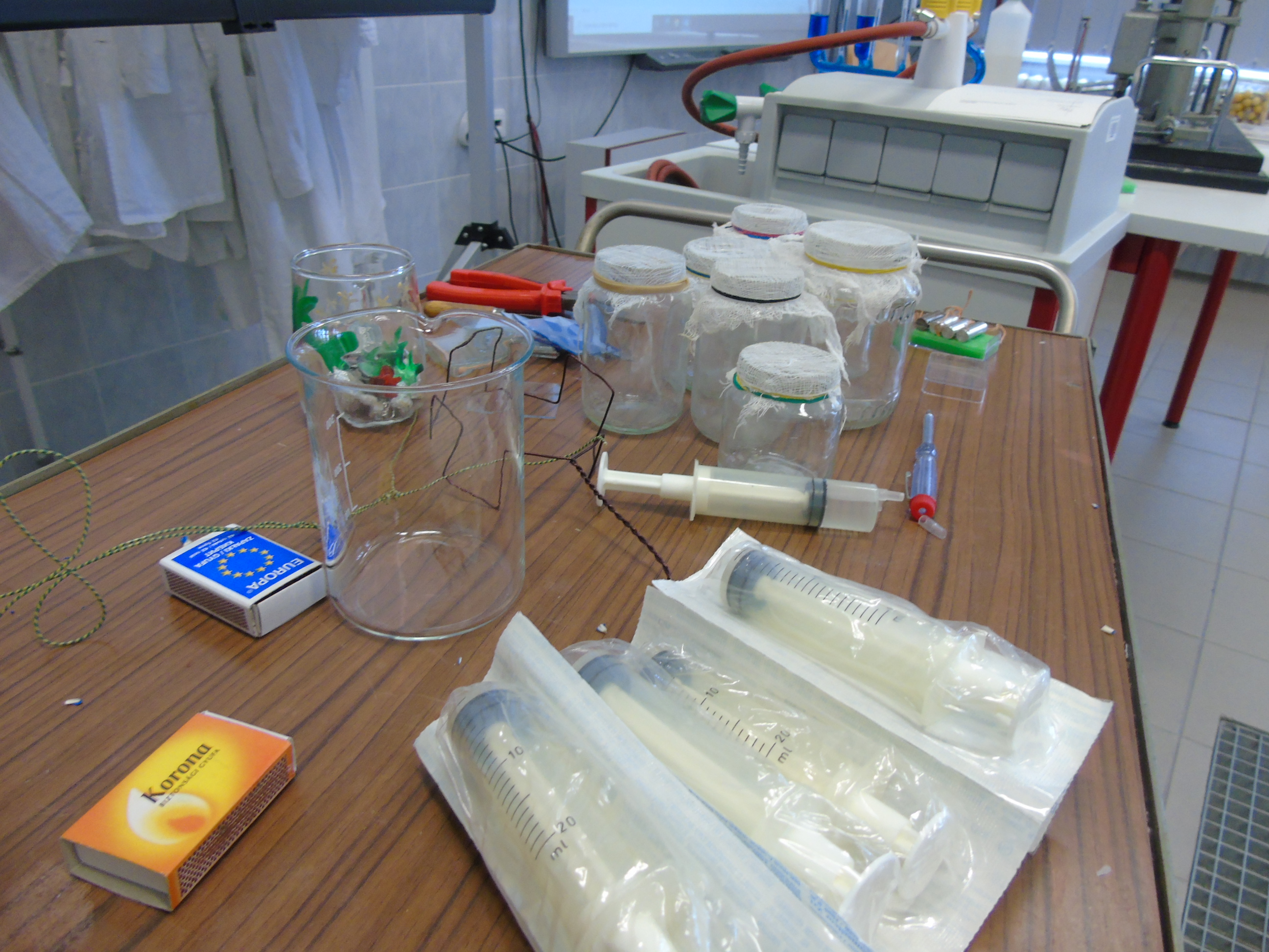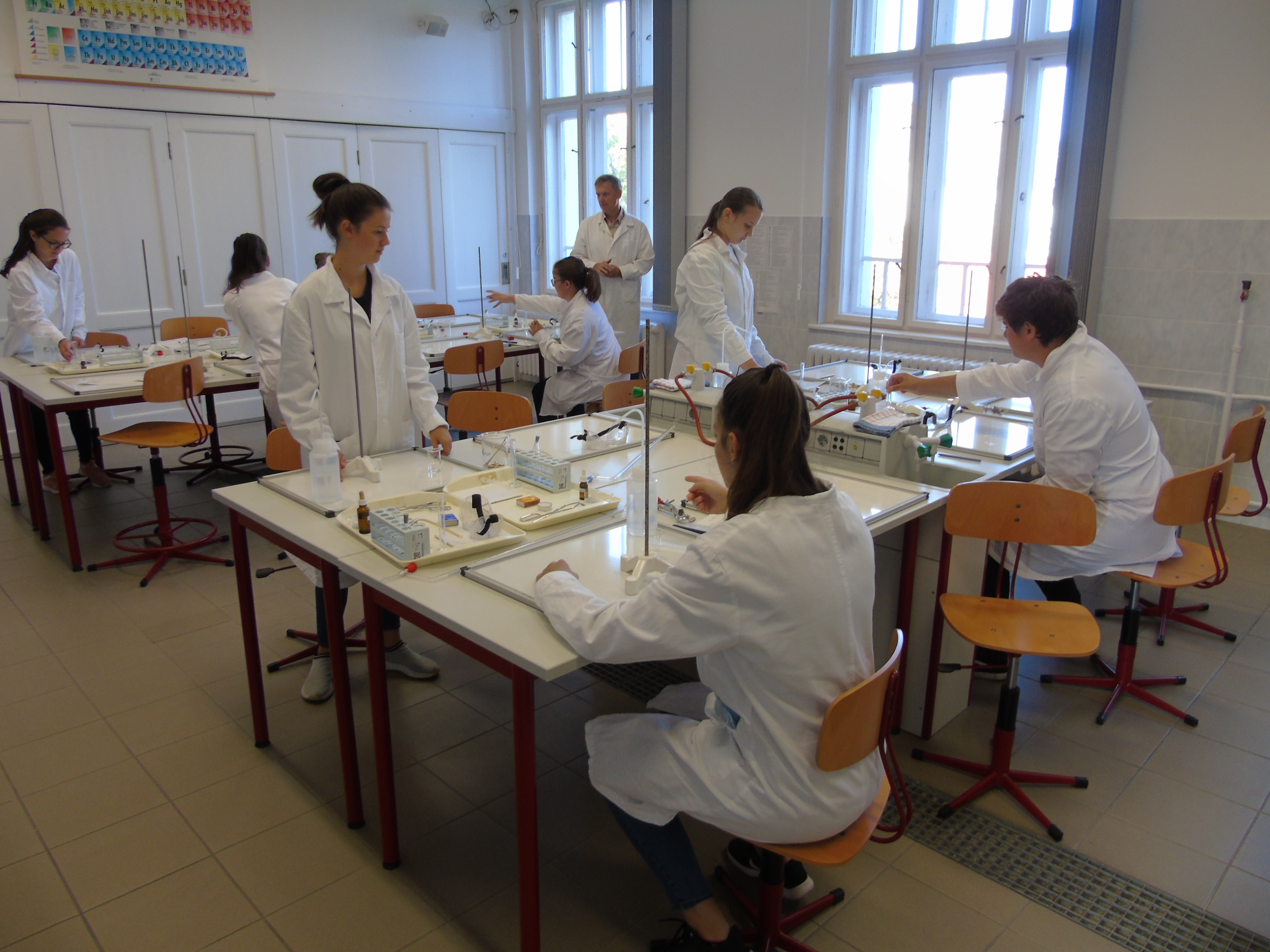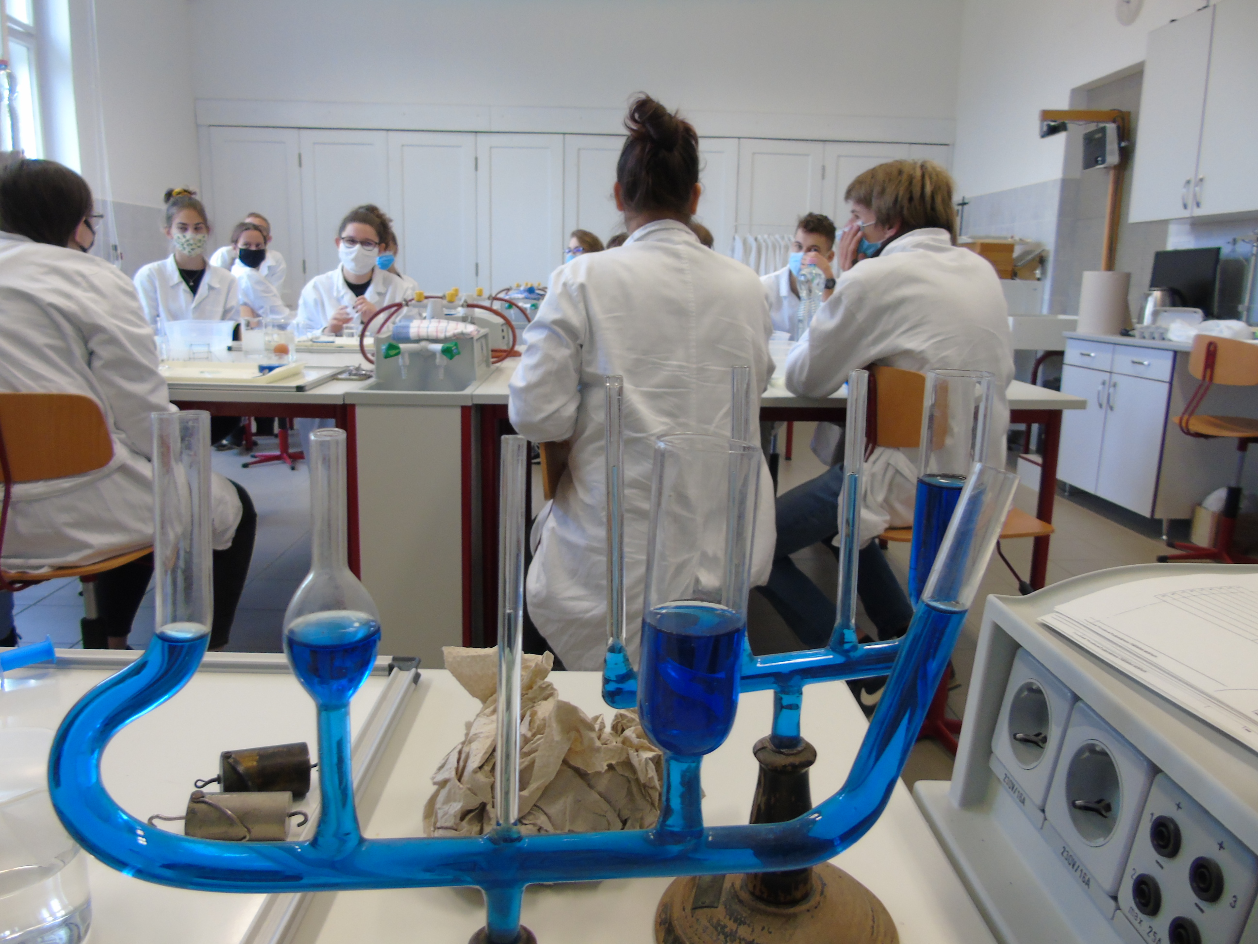 A kémiai kísérletezés az eszközök és módszerek megismerésével kezdődött, a tapasztaltabb csoport a szerves vegyületek kimutatásával és éghetőséggel kapcsolatban végzett tanulókísérleteket.