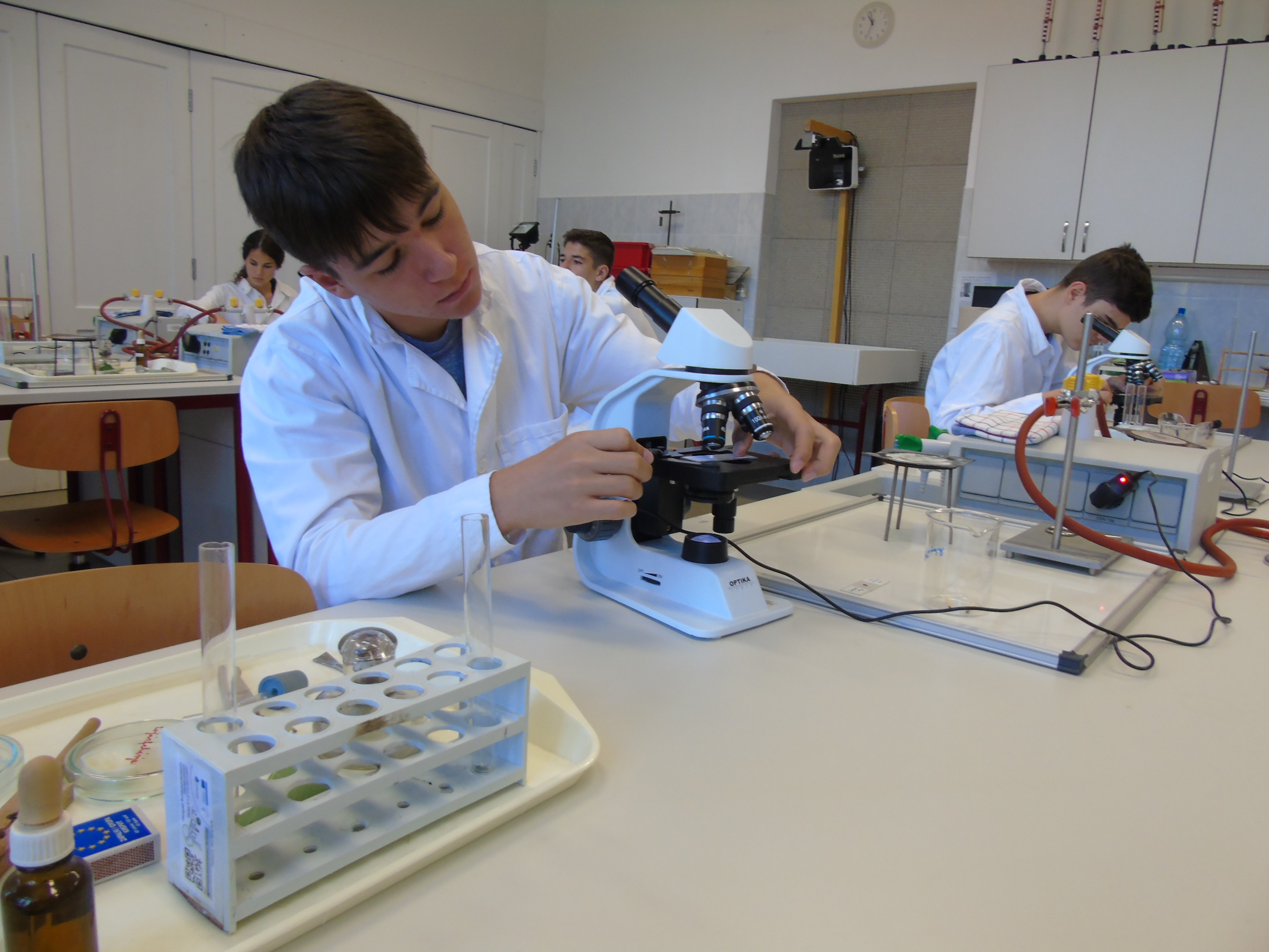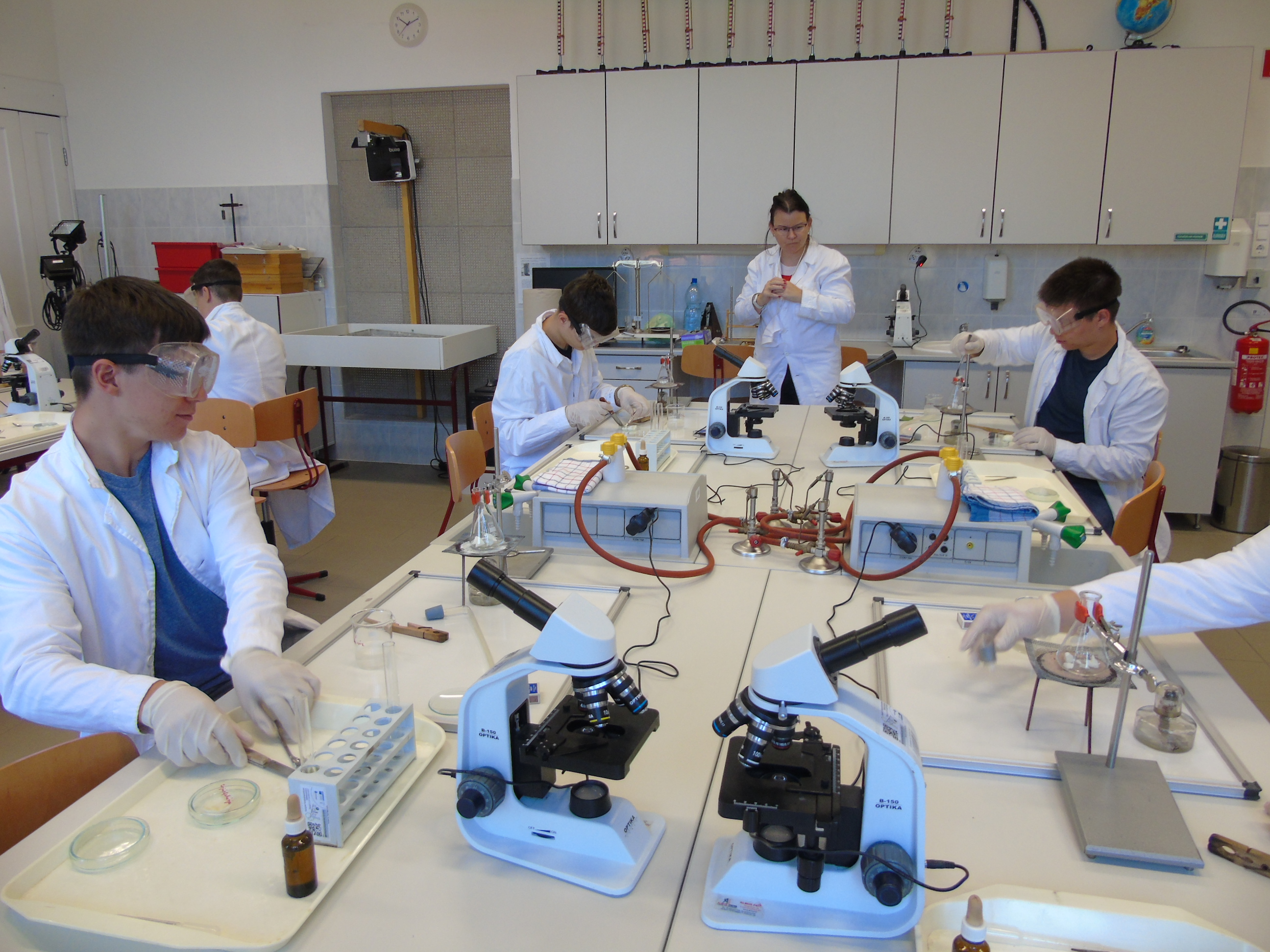 Biológia gyakorlaton az élőlényeket felépítő szervetlen és szerves anyagok az élő sejtek, szövetek mikroszkópos vizsgálatára került sor.