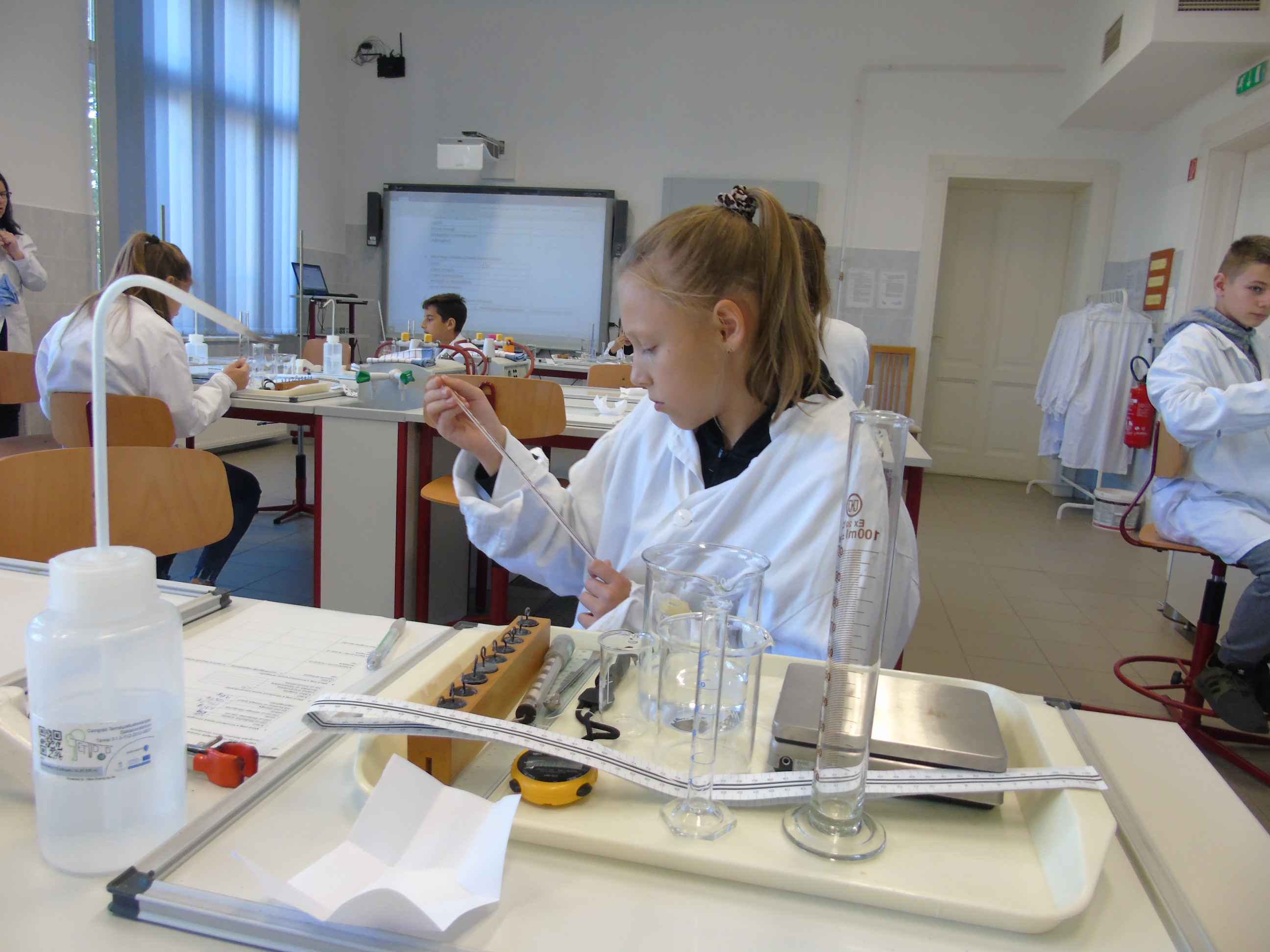 Fizikából a folyadékok vizsgálatához kapcsolódtak a kísérletek, a folyadékok mechanikájával és hőtágulással kapcsolatos megfigyeléseket, méréseket végeztek diákjaink.