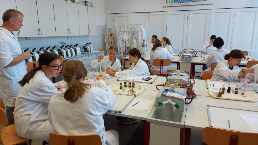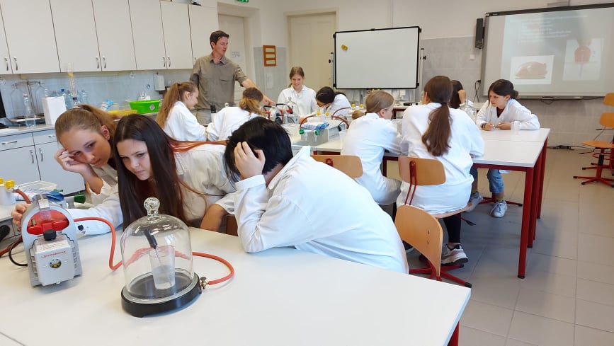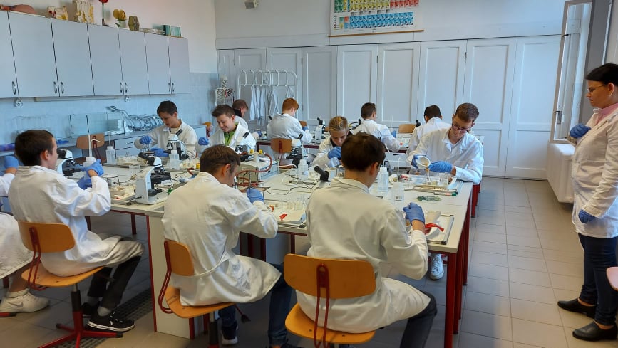 Idén első alkalommal a Piroskavárosi Általános Iskola nyolcadikosai vettek részt biológia, fizika, kémia és számítógépes mérések foglalkozásokon a Batsányi János Gimnázium Természettudományos Diáklaboratóriumában, osztályfőnökük kíséretében.