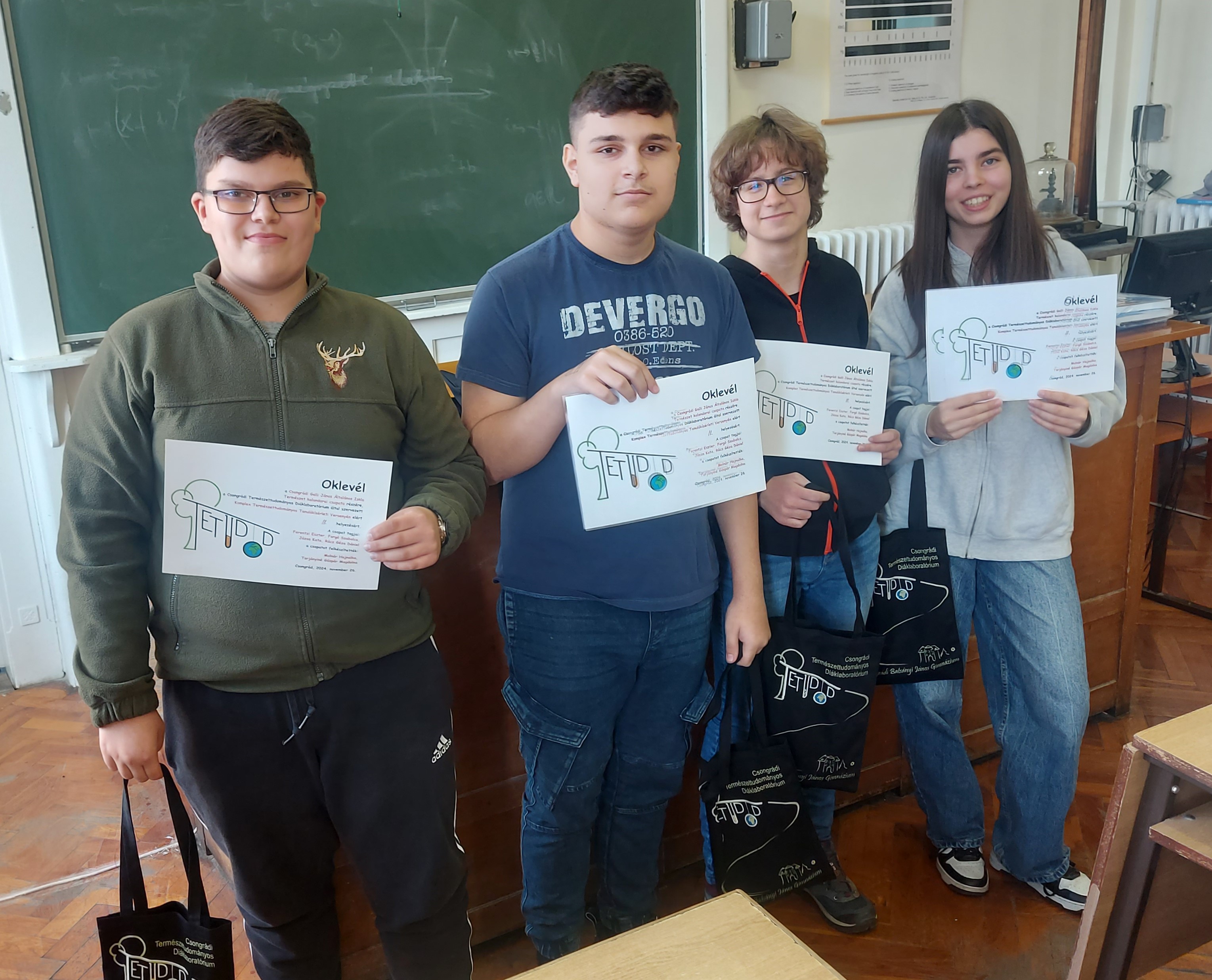 Tábori Levente tanár úr a nyolcadikos kémia könyvből válogatta össze a tanulókísérleteket, amelyek során sokféle laboratóriumi eszközt és módszert használtak, érdekes jelenségeket figyeltek meg, például a diákok saját maguk készítettek ammóniaszökőkutat, modellezték a csapadékképződést majd tapasztalataikra közösen fogalmazták meg a magyarázatot.