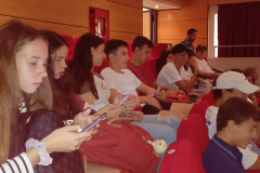 Hétfői napunkat egy előadó teremben indítottuk, ahol bemutatkoztak kis videókkal és játékkal egymásnak azok, akik szerepelnek az Erasmusban. Ezután nevezetes Portugál ételeket kóstolhattunk, amik nagyon ízletesek voltak. A napunkat utána a diákok iskolájába folytattuk, ami nekem nagyon tetszett, mert nagyon rendesek voltak az ott dolgozó tanárok és diákok. Az iskola látogatása után megünnepeltük Davide, egyik olasz fiú szülinapját és nekem nagyon ízlett a tortája. A délután folyamán különböző kóstolók és tradicionális dolgokat láthattunk és még részt is vehettünk egy olyan programon, ahol megmutattak rengeteg tudnivalót a műanyagokról és hogy hogyan is kell újrahasznosítani. Ez a nagyszerű program után bementünk a tornaterembe és egy hihetetlen hangulat fogadott minket. Mindenféle játékot ki tudtunk próbálni, ami nekem nagyon feldobta a napom. Ezután jöttek értünk a szülők és mehettünk haza. (Suti Simon)