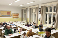 A technika teremben Gilicze Tamás tanár úr programozható robotokat mutatott a gyerekeknek. Az mBot robot a terepasztalon szenzorok segítségével vonalat követve, az akadályokat kikerülve teljesítette a pályát. A humanoid robot mozgását is megfigyelhették a résztvevők. Egy modell segítségével bemutatásra került a gyártósorok fáradhatatlan munkása a robotkar, majd egy kódokkal vezérelhető plotterrel hóembert rajzoltak. Végezetül micro:bit programozás következett: az érdeklődők blokkprogramozással összeállították a kódot, majd rátöltötték mikrokontrollerre és tesztelték a működését.