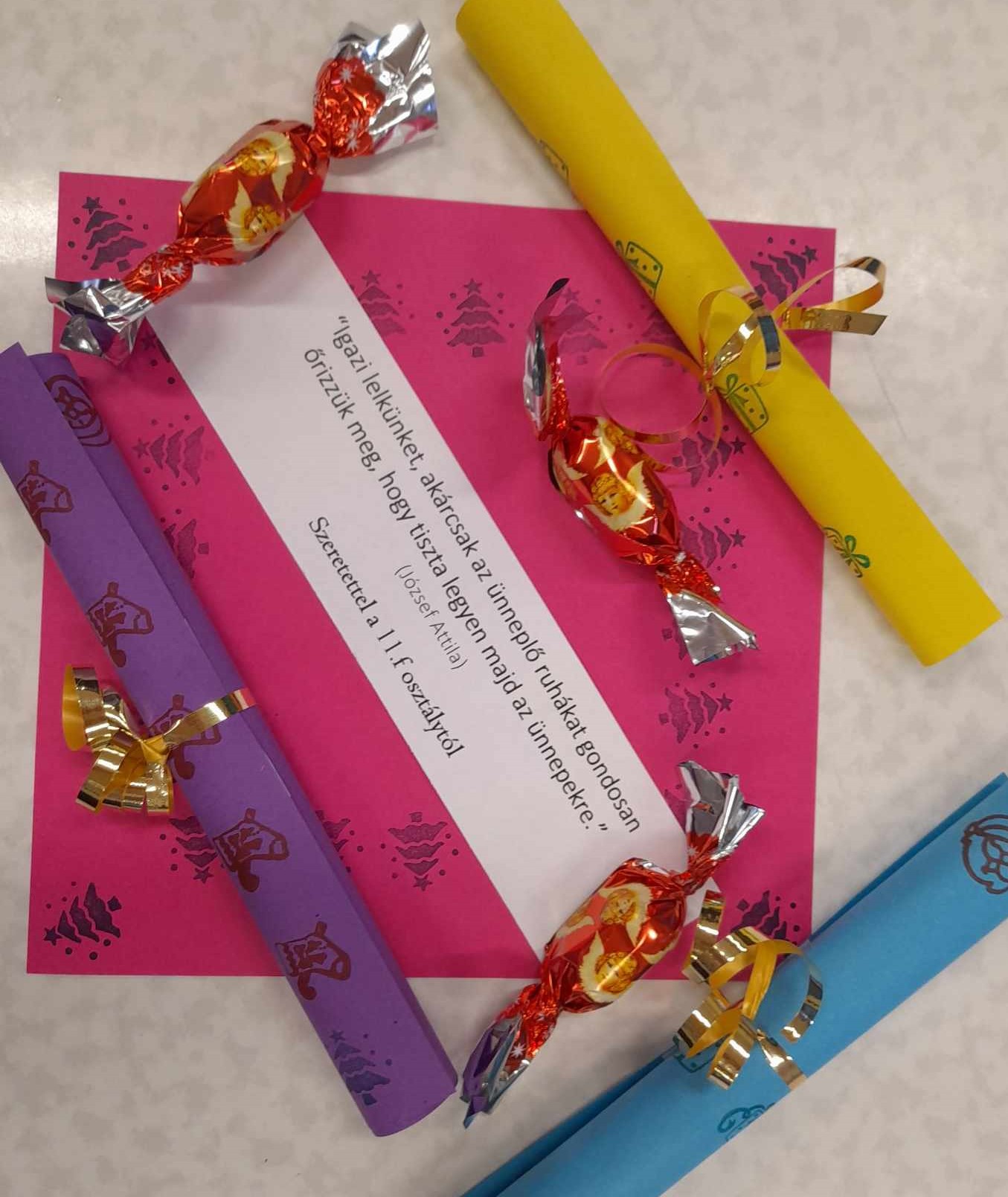 8/F osztály: Az osztály tanulóival átbeszéltük, hogy mennyire jó dolog kapni valamit, de ez a gondolatmenet alapján adni még jobb, mert akkor jót teszünk másokkal, így egymásnak készítettünk/vásároltunk karácsonyi ajándékokat és egy közös kellemes délutánt töltöttünk el iskolánkban.