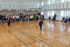 Ezután sorversenyre került sor. Vegyes csoportokat alakítottunk, négy részre osztva a résztvevőket. Itt nem igazán a versenyen volt a hangsúly, hanem a testmozgáson. Minden feladatot úgy teljesítettek, hogy egy meghívott vendég mellett egy-egy diákunk volt, aki segített a feladatok teljesítésében. A sorversenyt Huszák Béla Tanár Úr vezette le. Segítségére volt Konkolyné Tóth Györgyi Tanárnő.