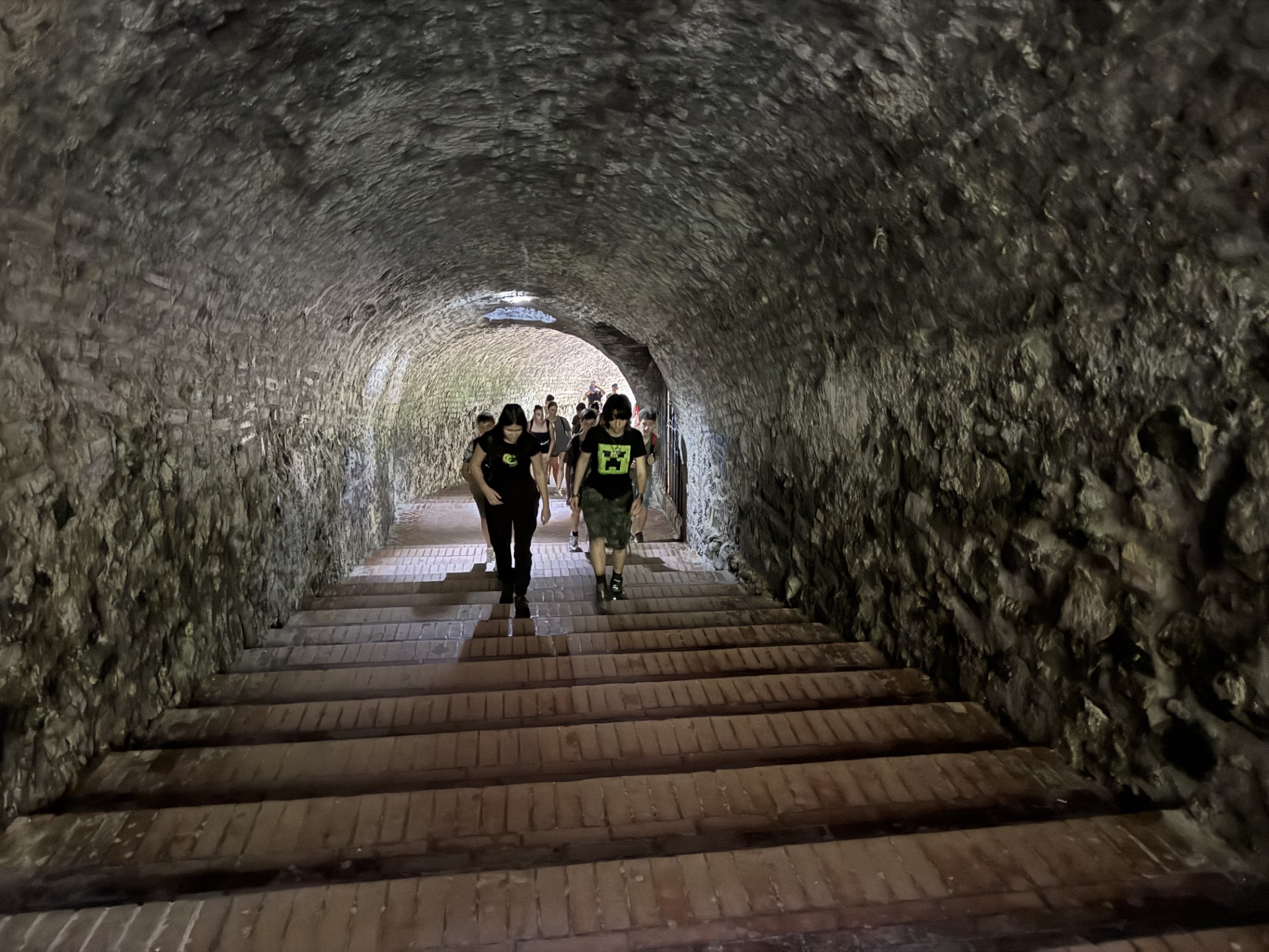 3. nap: 2025. június 5-én, kirándulásunk 3. napján kimozdultunk Óbecséről. Péterváradra utaztunk, ahol az egykori déli végvárrendszer megmaradt erődítményét látogattuk meg. A Duna fölé magasodó gyönyörű vár már messziről látható volt. Megnéztük a különleges óratornyot, a magasból csodálhattuk a várost. Körbejártuk a várat, felidéztük a történelemórán tanultakat a végvárrendszerről, valamint a várépítészetről, hiszen közelről láthattunk olasz bástyát. A legnagyobb élmény talán a vár alatt húzódó alagútrendszer, a kazamaták látogatása volt. Bár ez nem látogatható, de sikerült elérnünk, hogy egy kilométeres szakaszt megnézhettünk szerb idegenvezetővel. Béla bácsi kitűnő fordításának köszönhetően sok érdekes ismerettel gazdagodtunk a végvári katonák nehéz életéről, a föld alatti harci tevékenységről.