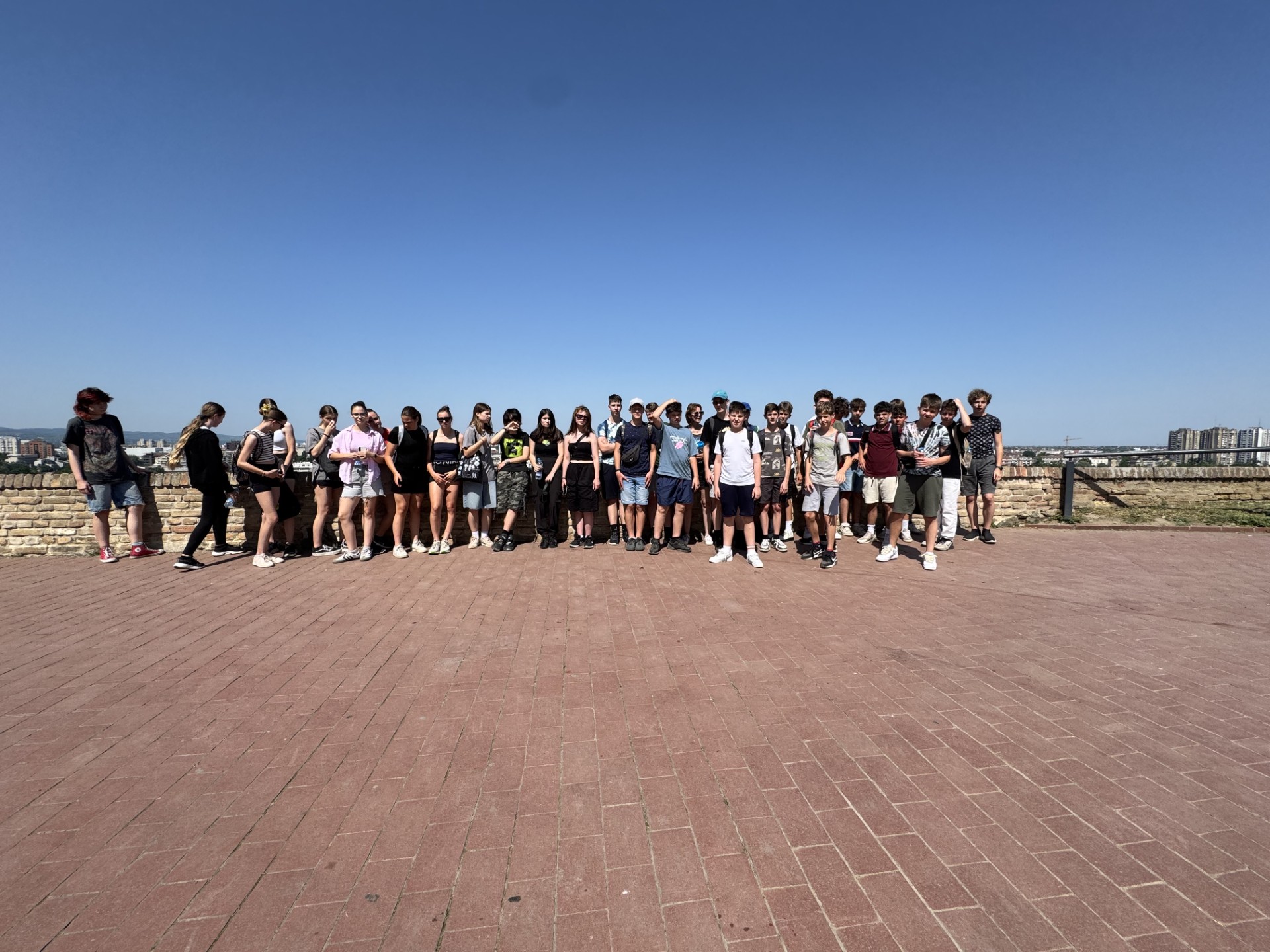 3. nap: 2025. június 5-én, kirándulásunk 3. napján kimozdultunk Óbecséről. Péterváradra utaztunk, ahol az egykori déli végvárrendszer megmaradt erődítményét látogattuk meg. A Duna fölé magasodó gyönyörű vár már messziről látható volt. Megnéztük a különleges óratornyot, a magasból csodálhattuk a várost. Körbejártuk a várat, felidéztük a történelemórán tanultakat a végvárrendszerről, valamint a várépítészetről, hiszen közelről láthattunk olasz bástyát. A legnagyobb élmény talán a vár alatt húzódó alagútrendszer, a kazamaták látogatása volt. Bár ez nem látogatható, de sikerült elérnünk, hogy egy kilométeres szakaszt megnézhettünk szerb idegenvezetővel. Béla bácsi kitűnő fordításának köszönhetően sok érdekes ismerettel gazdagodtunk a végvári katonák nehéz életéről, a föld alatti harci tevékenységről.