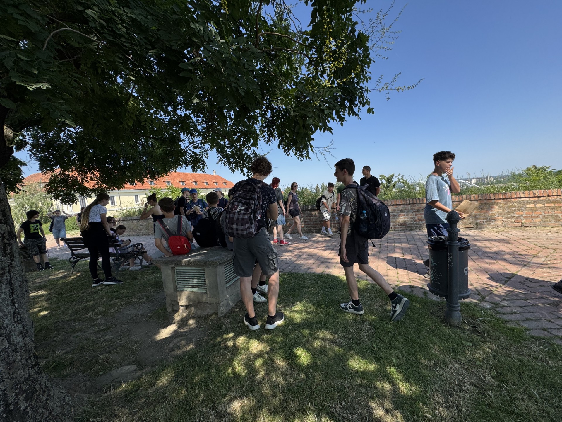 3. nap: 2025. június 5-én, kirándulásunk 3. napján kimozdultunk Óbecséről. Péterváradra utaztunk, ahol az egykori déli végvárrendszer megmaradt erődítményét látogattuk meg. A Duna fölé magasodó gyönyörű vár már messziről látható volt. Megnéztük a különleges óratornyot, a magasból csodálhattuk a várost. Körbejártuk a várat, felidéztük a történelemórán tanultakat a végvárrendszerről, valamint a várépítészetről, hiszen közelről láthattunk olasz bástyát. A legnagyobb élmény talán a vár alatt húzódó alagútrendszer, a kazamaták látogatása volt. Bár ez nem látogatható, de sikerült elérnünk, hogy egy kilométeres szakaszt megnézhettünk szerb idegenvezetővel. Béla bácsi kitűnő fordításának köszönhetően sok érdekes ismerettel gazdagodtunk a végvári katonák nehéz életéről, a föld alatti harci tevékenységről.