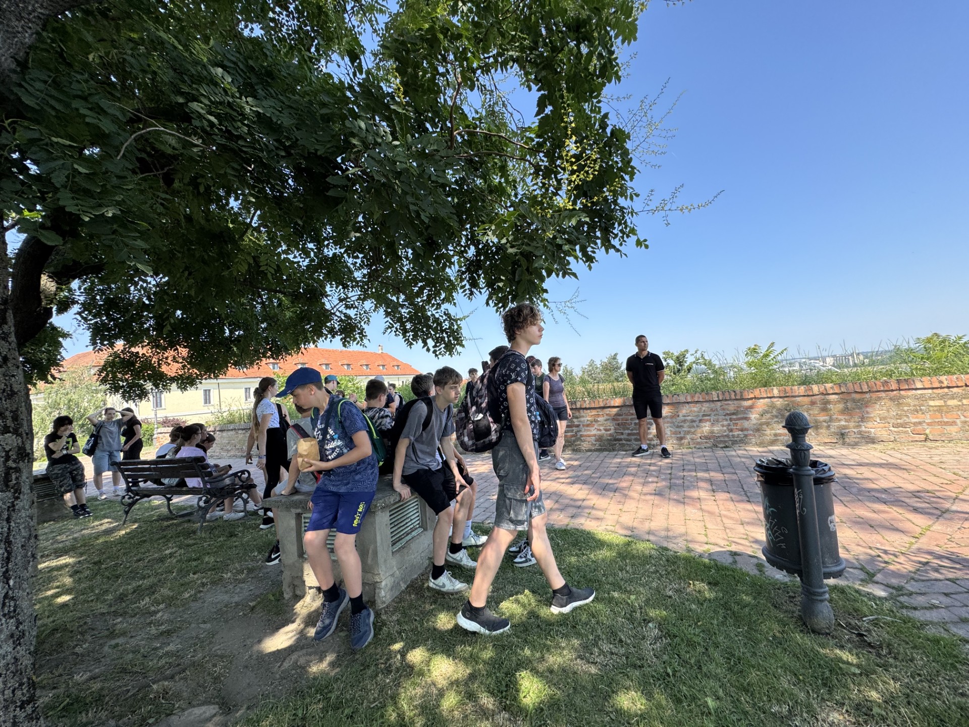 3. nap: 2025. június 5-én, kirándulásunk 3. napján kimozdultunk Óbecséről. Péterváradra utaztunk, ahol az egykori déli végvárrendszer megmaradt erődítményét látogattuk meg. A Duna fölé magasodó gyönyörű vár már messziről látható volt. Megnéztük a különleges óratornyot, a magasból csodálhattuk a várost. Körbejártuk a várat, felidéztük a történelemórán tanultakat a végvárrendszerről, valamint a várépítészetről, hiszen közelről láthattunk olasz bástyát. A legnagyobb élmény talán a vár alatt húzódó alagútrendszer, a kazamaták látogatása volt. Bár ez nem látogatható, de sikerült elérnünk, hogy egy kilométeres szakaszt megnézhettünk szerb idegenvezetővel. Béla bácsi kitűnő fordításának köszönhetően sok érdekes ismerettel gazdagodtunk a végvári katonák nehéz életéről, a föld alatti harci tevékenységről.