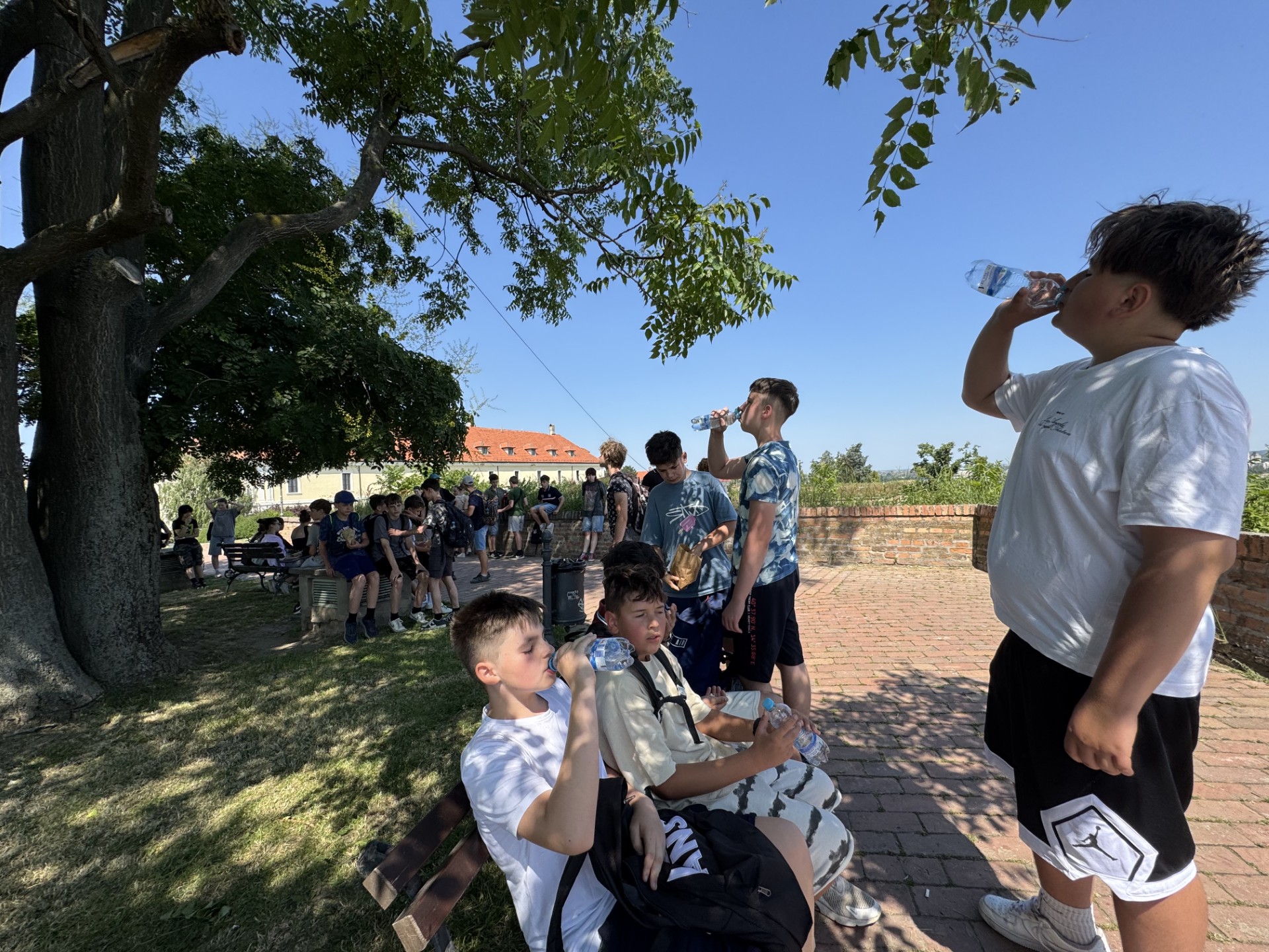 3. nap: 2025. június 5-én, kirándulásunk 3. napján kimozdultunk Óbecséről. Péterváradra utaztunk, ahol az egykori déli végvárrendszer megmaradt erődítményét látogattuk meg. A Duna fölé magasodó gyönyörű vár már messziről látható volt. Megnéztük a különleges óratornyot, a magasból csodálhattuk a várost. Körbejártuk a várat, felidéztük a történelemórán tanultakat a végvárrendszerről, valamint a várépítészetről, hiszen közelről láthattunk olasz bástyát. A legnagyobb élmény talán a vár alatt húzódó alagútrendszer, a kazamaták látogatása volt. Bár ez nem látogatható, de sikerült elérnünk, hogy egy kilométeres szakaszt megnézhettünk szerb idegenvezetővel. Béla bácsi kitűnő fordításának köszönhetően sok érdekes ismerettel gazdagodtunk a végvári katonák nehéz életéről, a föld alatti harci tevékenységről.