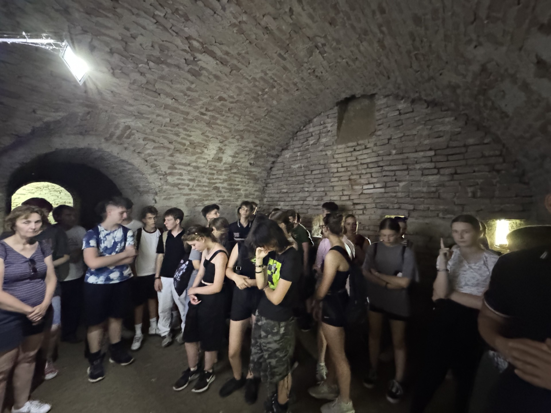 3. nap: 2025. június 5-én, kirándulásunk 3. napján kimozdultunk Óbecséről. Péterváradra utaztunk, ahol az egykori déli végvárrendszer megmaradt erődítményét látogattuk meg. A Duna fölé magasodó gyönyörű vár már messziről látható volt. Megnéztük a különleges óratornyot, a magasból csodálhattuk a várost. Körbejártuk a várat, felidéztük a történelemórán tanultakat a végvárrendszerről, valamint a várépítészetről, hiszen közelről láthattunk olasz bástyát. A legnagyobb élmény talán a vár alatt húzódó alagútrendszer, a kazamaták látogatása volt. Bár ez nem látogatható, de sikerült elérnünk, hogy egy kilométeres szakaszt megnézhettünk szerb idegenvezetővel. Béla bácsi kitűnő fordításának köszönhetően sok érdekes ismerettel gazdagodtunk a végvári katonák nehéz életéről, a föld alatti harci tevékenységről.