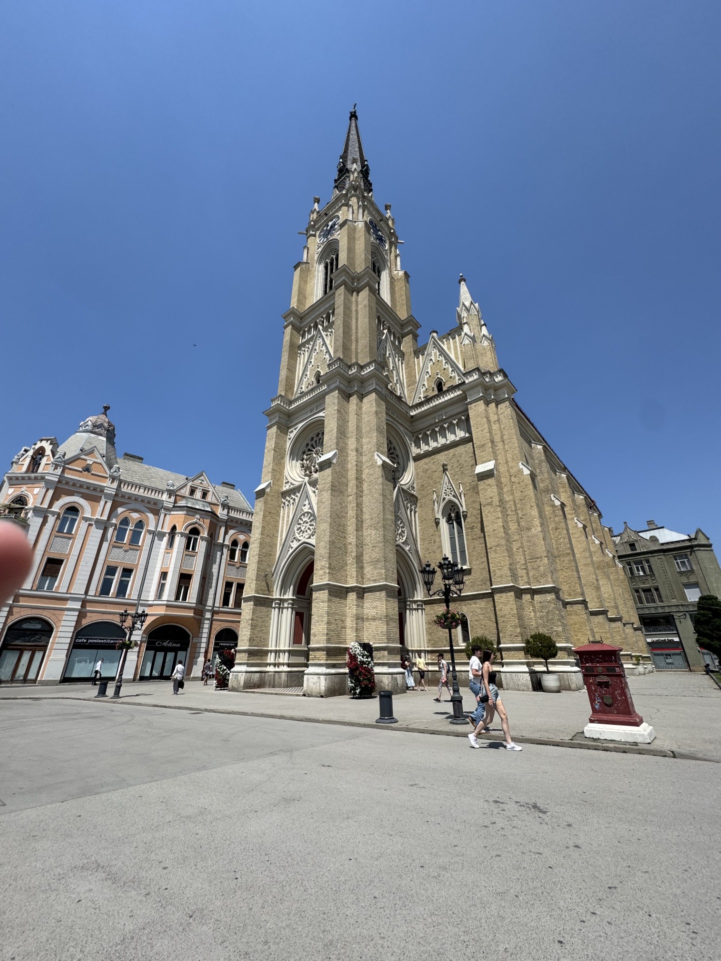 Úticsomagunk elfogyasztása után körbenéztünk Újvidék főterén. A Mária neve templomig sétáltunk.