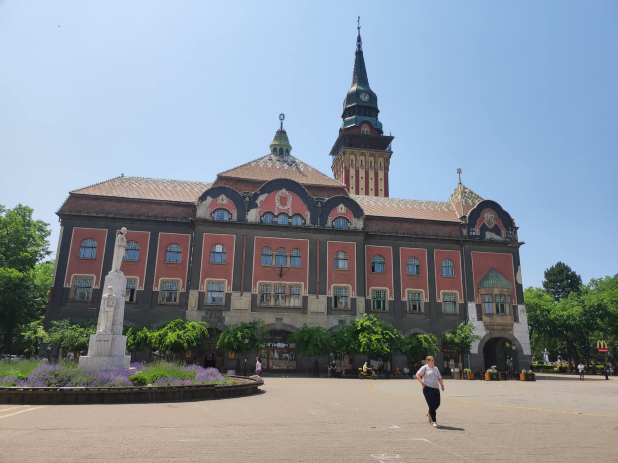 4. nap: Kirándulásunk utolsó napja 2025. június 6-a volt. Reggeli után összecsomagoltunk, és elindultunk az utolsó állomás, Szabadka felé. Ezt a napot izgatottan várták a gyerekek, mert a helyi, regionális kereskedelembe pillanthattunk bele a szabadkai piacon, a híres „Buvljak”-on. Három csoportba osztottuk a gyerekeket a három kísérő nevelő vezetésével. Így tudtunk nekik segíteni a vásárlásban, amibe nagyon gyorsan belejöttek, élvezték a hatalmas piacot. Délben elfogyasztottuk az úticsomagunkat, majd sétára indultunk Szabadka központi részében. Beszélgettünk Kosztolányi Dezsőről, felidéztük Szabadkához kötődő élményeit.