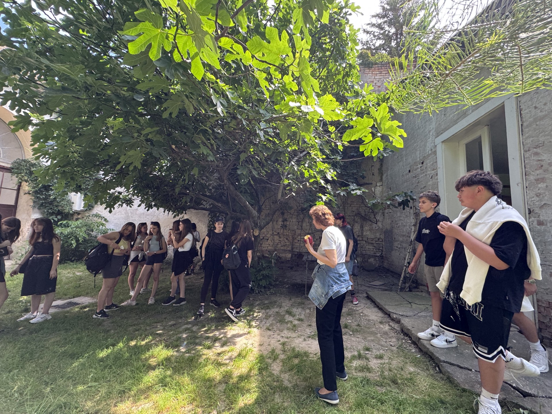 4. nap: Kirándulásunk utolsó napja 2025. június 6-a volt. Reggeli után összecsomagoltunk, és elindultunk az utolsó állomás, Szabadka felé. Ezt a napot izgatottan várták a gyerekek, mert a helyi, regionális kereskedelembe pillanthattunk bele a szabadkai piacon, a híres „Buvljak”-on. Három csoportba osztottuk a gyerekeket a három kísérő nevelő vezetésével. Így tudtunk nekik segíteni a vásárlásban, amibe nagyon gyorsan belejöttek, élvezték a hatalmas piacot. Délben elfogyasztottuk az úticsomagunkat, majd sétára indultunk Szabadka központi részében. Beszélgettünk Kosztolányi Dezsőről, felidéztük Szabadkához kötődő élményeit.