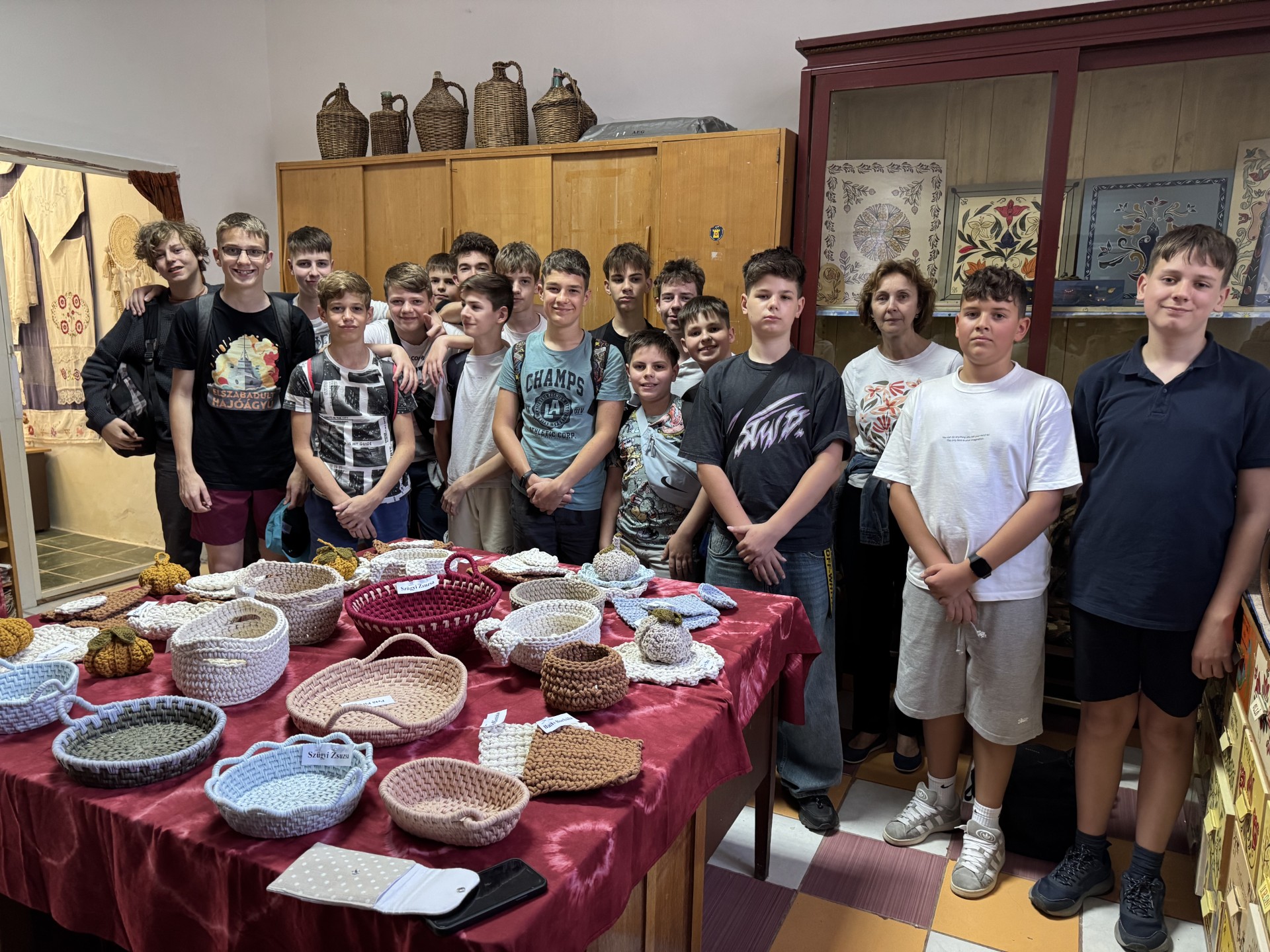 4. nap: Kirándulásunk utolsó napja 2025. június 6-a volt. Reggeli után összecsomagoltunk, és elindultunk az utolsó állomás, Szabadka felé. Ezt a napot izgatottan várták a gyerekek, mert a helyi, regionális kereskedelembe pillanthattunk bele a szabadkai piacon, a híres „Buvljak”-on. Három csoportba osztottuk a gyerekeket a három kísérő nevelő vezetésével. Így tudtunk nekik segíteni a vásárlásban, amibe nagyon gyorsan belejöttek, élvezték a hatalmas piacot. Délben elfogyasztottuk az úticsomagunkat, majd sétára indultunk Szabadka központi részében. Beszélgettünk Kosztolányi Dezsőről, felidéztük Szabadkához kötődő élményeit.