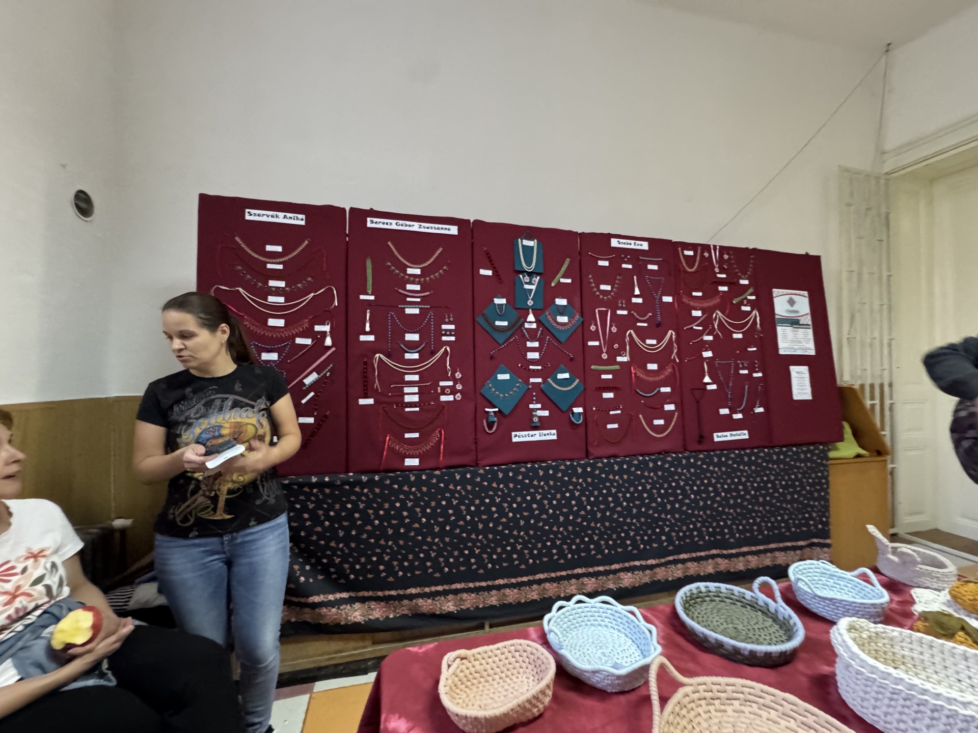 A gyors határátlépésnek köszönhetően időben érkeztünk Zentára, ahová az első nap programjait szerveztük. A városi sportcsarnoknál parkoltunk, majd gyalog indultunk a városba. Először Sólya Bálint kézművesmester műhelyében jártunk.  A gyerekek két csoportba kerültek, s az egyik fele a fazekasmester és munkatársai által gondozott múzeumi részben nézték meg a helyi kézművescsoportok által készített tárgyakat. Kipróbálhatták hogyan készítették régen elő az anyagot a hímzéshez. A csoport másik fele Sólya Bálint és kolléganője segítségével, iránymutatásával az agyagozással ismerkedett. Készítettünk egy szívet szépen feldíszítve, amit majd kiégetnek számunkra, és később a gyerekek megkapják ezt a saját maguk által készített terméket. Nagyon lelkesen zajlott a műhelyben a munka, mindenki igyekezett a legszebbet alkotni.