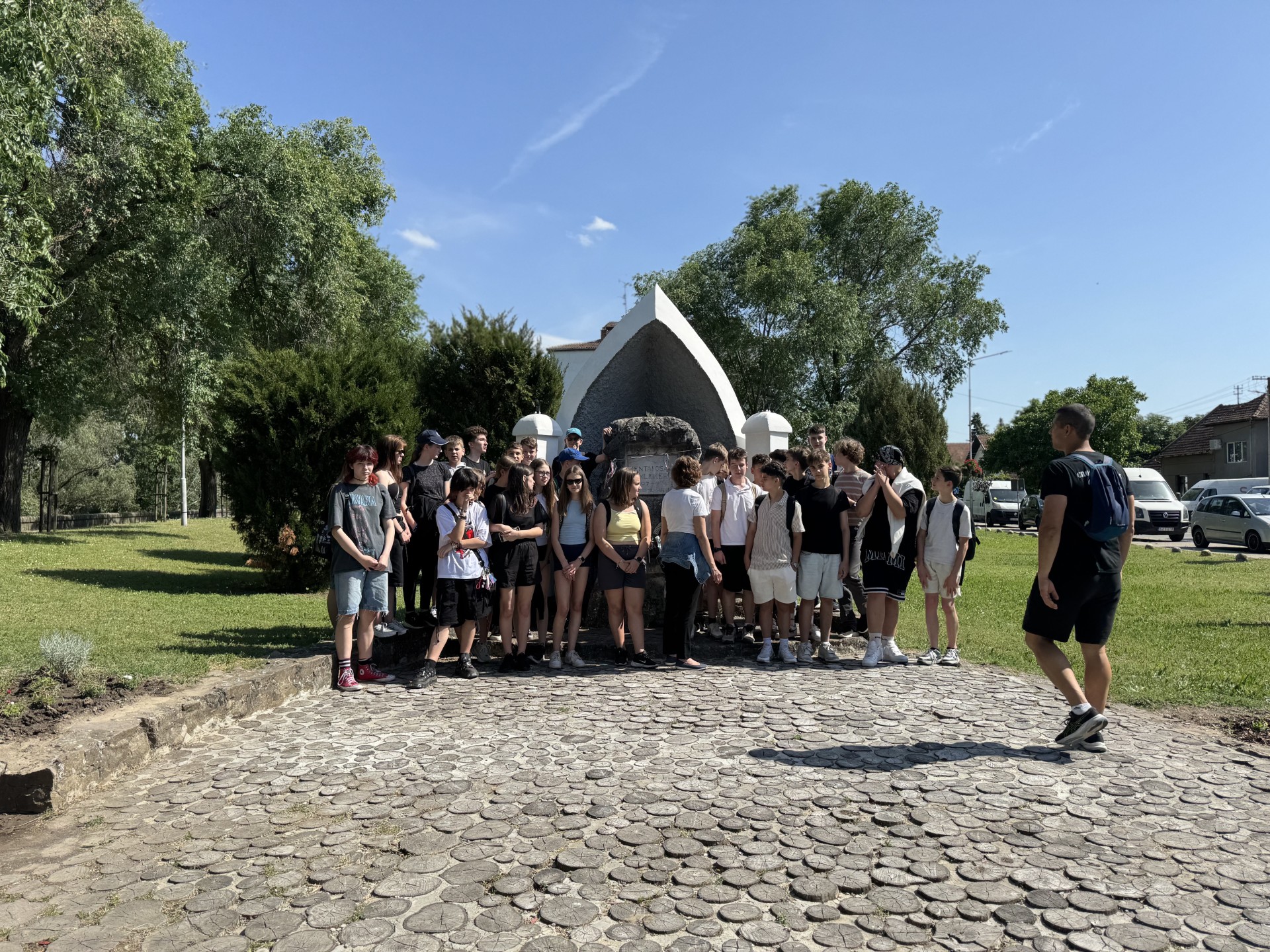 2. nap: 2025. június 4. különleges nap volt, hiszen történelmi tanulmányainkból ismertük ennek a napnak jelentőségét. Otthon már készültünk, hogy Óbecsén is tiszteletünket tegyük emlékezve erre. Ez a nap a reggeli után rövid autóbuszos úttal indult. Megérkeztünk a pusztatemplomhoz vezető útra, Aracsra. Gyalogtúrával közelítettük meg a külhoni magyarság kultikus építményét, amely bár romos, mégis magával ragadó emléke a korai építészetnek, valamint a keresztény kultúrának ezen a területen.