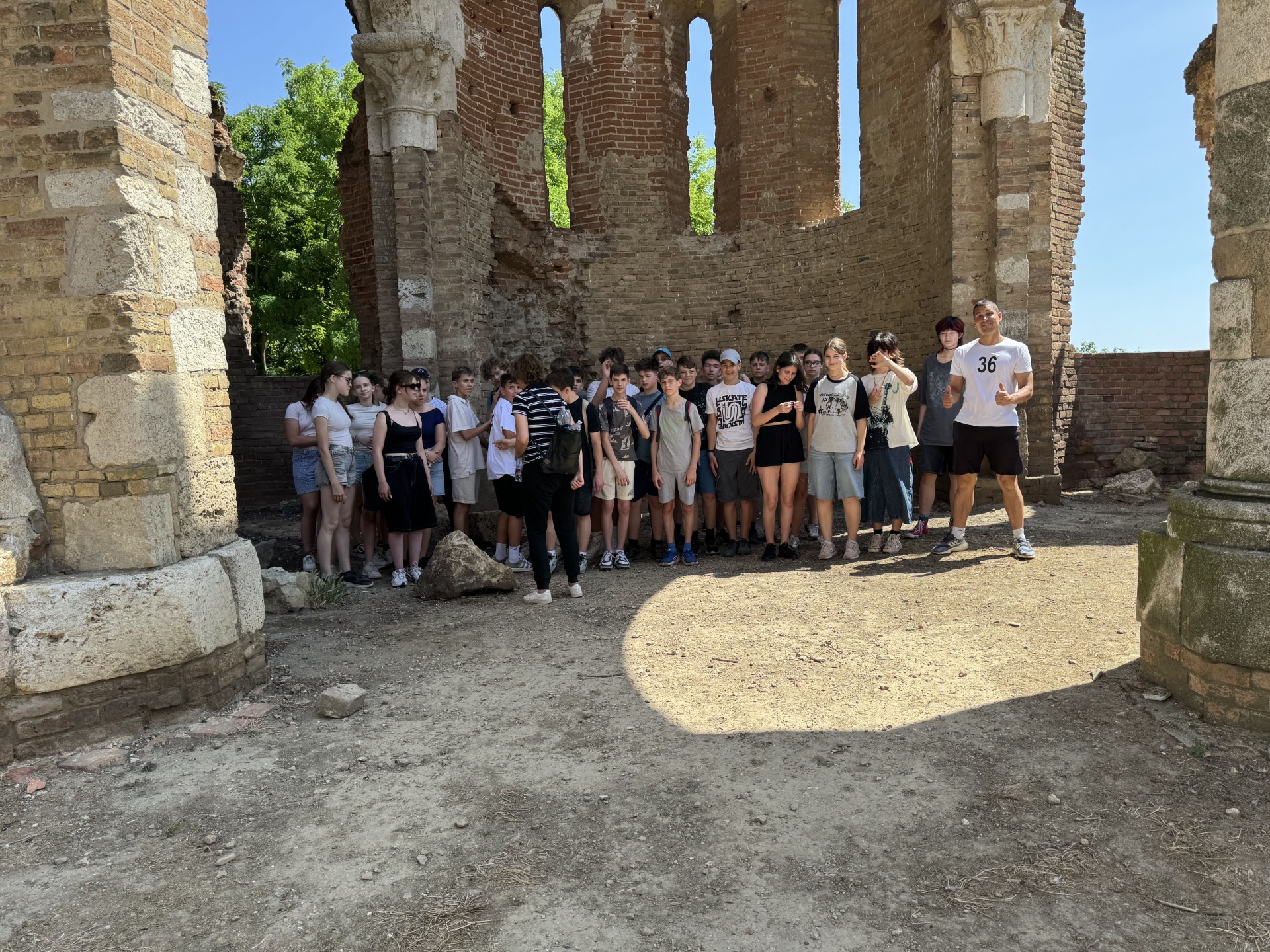3. nap: 2025. június 5-én, kirándulásunk 3. napján kimozdultunk Óbecséről. Péterváradra utaztunk, ahol az egykori déli végvárrendszer megmaradt erődítményét látogattuk meg. A Duna fölé magasodó gyönyörű vár már messziről látható volt. Megnéztük a különleges óratornyot, a magasból csodálhattuk a várost. Körbejártuk a várat, felidéztük a történelemórán tanultakat a végvárrendszerről, valamint a várépítészetről, hiszen közelről láthattunk olasz bástyát. A legnagyobb élmény talán a vár alatt húzódó alagútrendszer, a kazamaták látogatása volt. Bár ez nem látogatható, de sikerült elérnünk, hogy egy kilométeres szakaszt megnézhettünk szerb idegenvezetővel. Béla bácsi kitűnő fordításának köszönhetően sok érdekes ismerettel gazdagodtunk a végvári katonák nehéz életéről, a föld alatti harci tevékenységről.