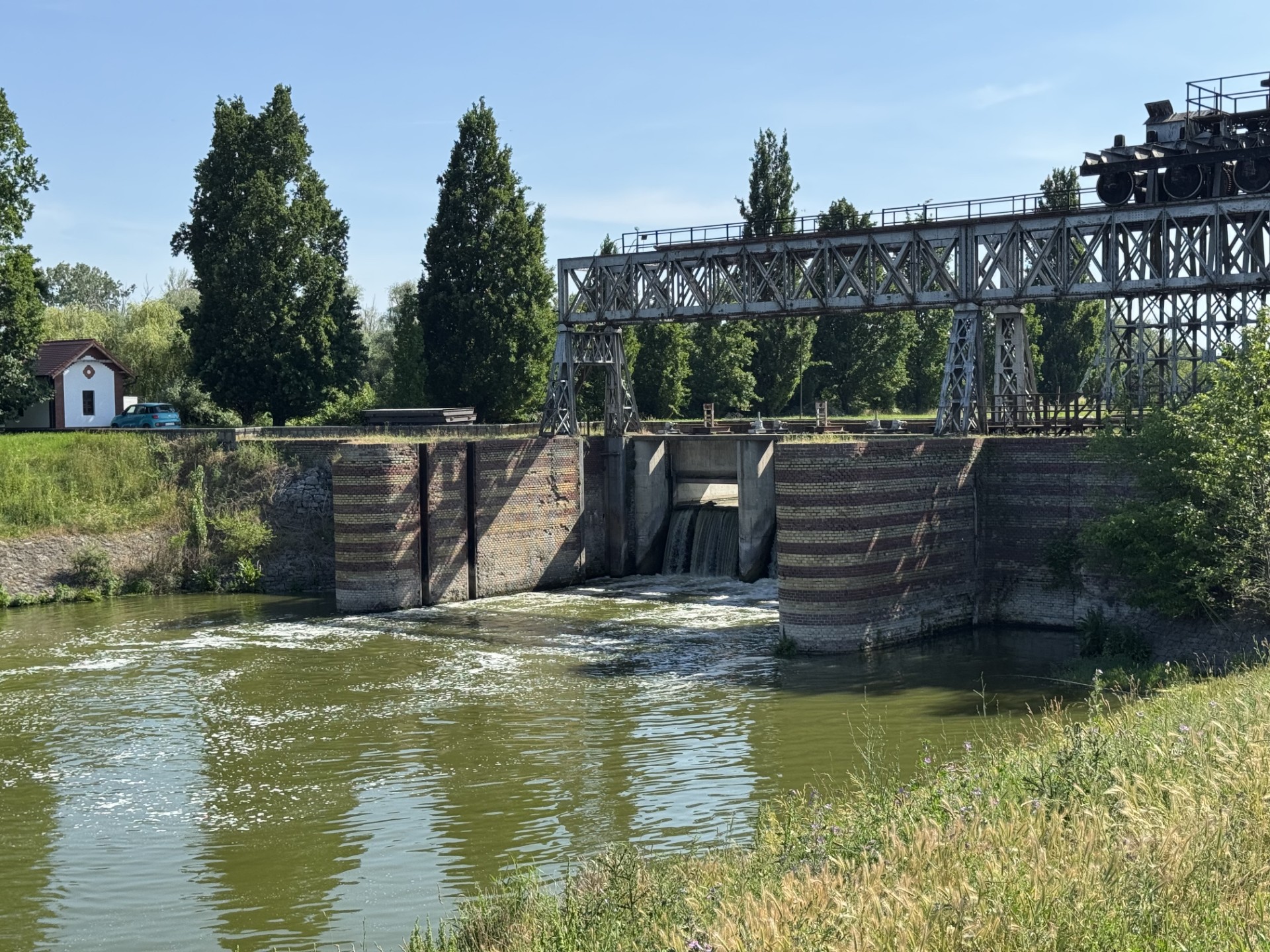 Következő állomásként autóbusszal, majd rövid sétával eljutottunk a régi hajóáteresztő zsiliphez. Itt vízmérést is végeztünk, ahogyan azt már otthon megnézték a csongrádi szakaszon.