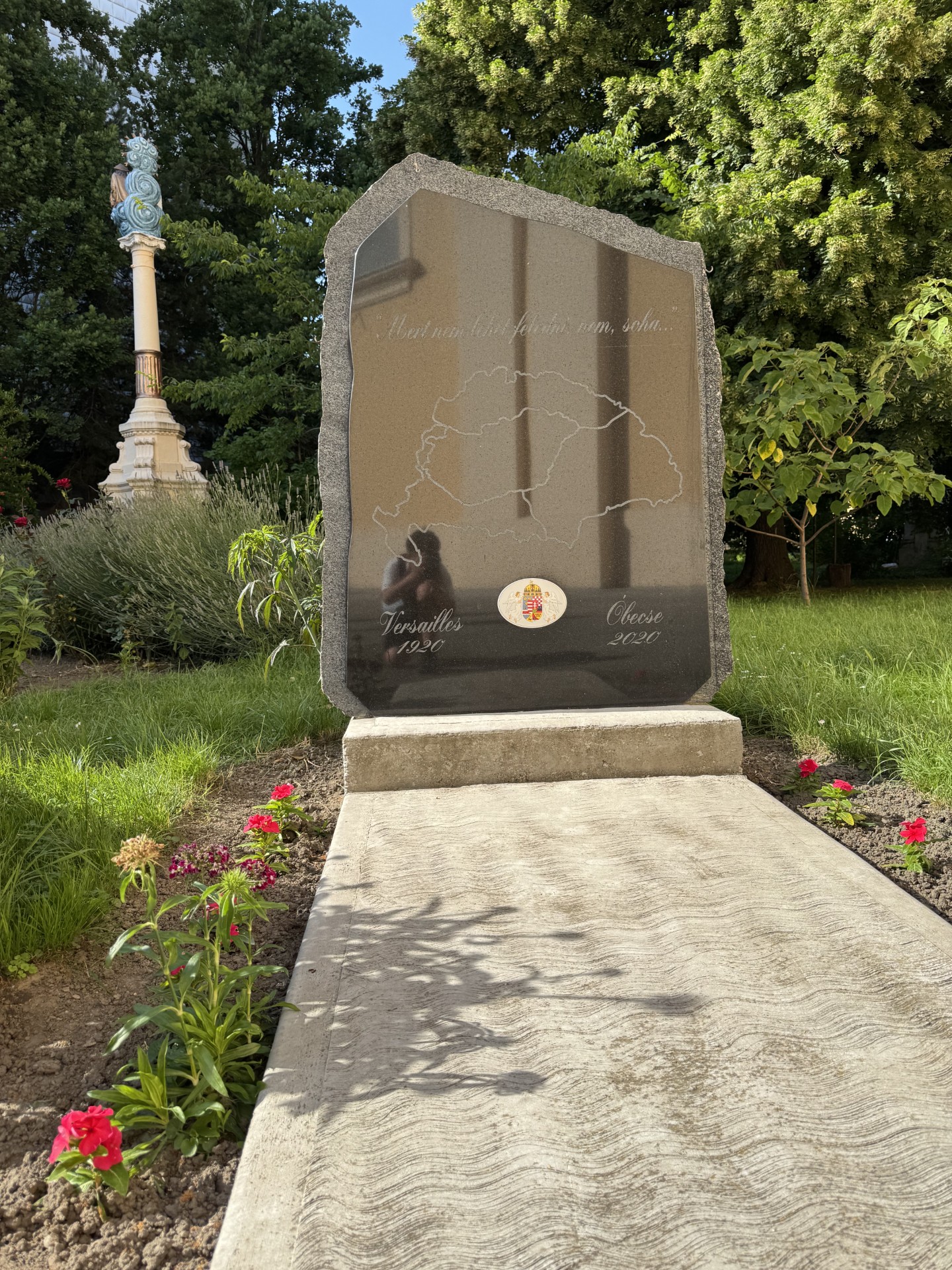 Június 4. a Nemzeti Összetartozás Napja, amikor a kegyetlen 1920-as békediktátumra emlékezünk. Visszatérve a városba a főtérre indultunk, ahol a templom kertjében áll a Trianonra emlékeztető jelképes sír. Rövid műsorral készültünk. Ujszászi János verset mondott (Móra Ferenc: Pásztorköszöntő a kiskőrösi jászolnál). Majd az emlékezés mécseseit helyeztük el. Mi voltunk, akik még időben is szinte igazodtunk a közel fél ötös egykori aláírási időhöz. A városi megemlékezés itt 8-án volt. Főhajtással tisztelegtünk elődeink előtt.