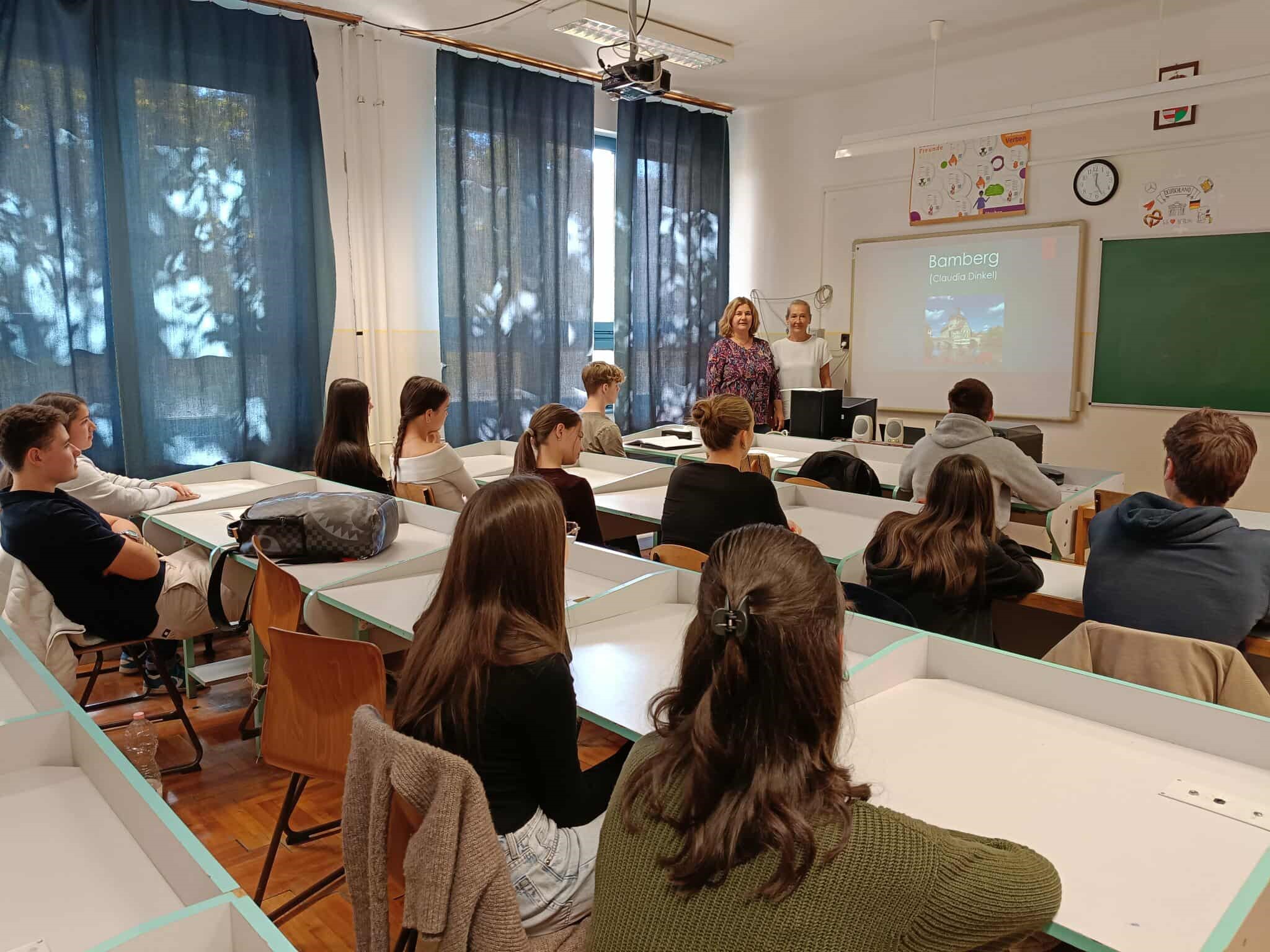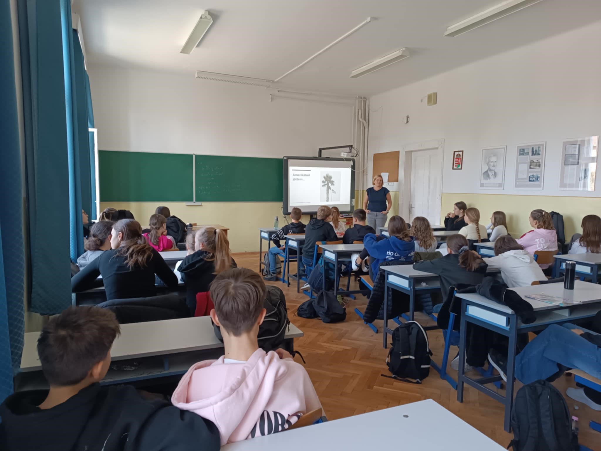 A program nemcsak az iskolában zajló nemzetközi projektek eredményeit mutatta be, hanem valódi kulturális találkozásokra is lehetőséget adott. Vendégünk volt egy Claudia Dinkel, aki 11 éve él Magyarországon, Bokroson. A beszélgetés során mesélt Németországról és Bambergről, ahonnan származik, a két ország közötti hasonlóságokról és különbségekről. A diákok kérdéseire válaszolva mesélt az életéről, arról, hogy érzi magát országunkban, mivel foglalkozik a szabadidejében, hogy ízlenek neki a magyar ételek és hová szeretne elutazni. Bertalanné Kis Nóra szülőként tartotta meg érdekes beszámolóját. Volt batsányisként Amerikában vendégtanulóként ismerte meg az ottani oktatási rendszert és mesélt a gyerekeknek élményeiről. A prezentációjában Los Angeles és környékét mutatta be.