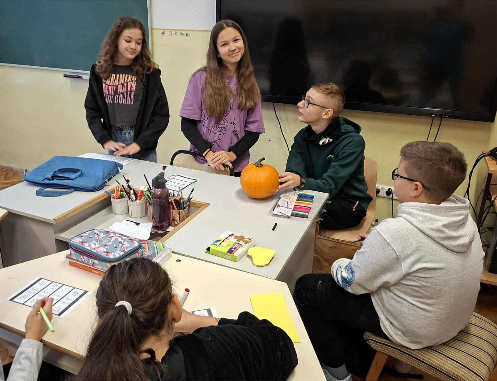 - Október 21-én tartottuk a 12.F osztályban (Szaktanár: Biró Edit tanárnő) a második Boldogságóránkat. Egy előzetes feladattal kezdtük az órát: a csoport tagjai németül beszámoltak arról, mit olvastak a neten a bohócdoktorokról, a nevetésterápiáról és a nevetőjógáról. Ezután gyakorlatban is kipróbáltuk a hónap témájának, az optimizmusnak a gyakorlását: a diákok szituációs játékokat játszottak német nyelven, ahol negatív mondatokra, kellemetlen helyzetekre kellett pozitív, optimista válaszokat adniuk. A legjobb, legkreatívabb, legoptimistább reakciókat összegyűjtöttük és együtt megbeszéltük. Kiderült, hogy még a legrosszabb, legkellemetlenebb helyzetben is meg lehet találni a pozitívumot: ha nincs a városban internet, el lehet menni biciklizni, barátokkal találkozni, ha nem ízlik az ebéd a menzán, saját magunk is főzhetünk valamit, amit szeretünk, ha rossz jegyet kapunk egy tantárgyból, ez több tanulásra ösztönözhet bennünket. Az óra végén ismét a mesterséges intelligencia segítségével oldottunk meg egy feladatot: ezúttal az AI Song Generator program segítségével német nyelvű dalt alkottunk, ki lehetett választani a dal stílusát, a témáját (ezúttal természetesen az optimizmus, a pozitív gondolkodás volt a téma), sőt, még néhány szót is, amit a dalnak tartalmaznia kellett. Meghallgattuk a különböző stílusú dalokat, megállapítottuk, hogy minél jobban hasonlítottak egymásra a parancsok, amit megfogalmaztunk, annál inkább megegyeztek az eredményként kapott dalok.