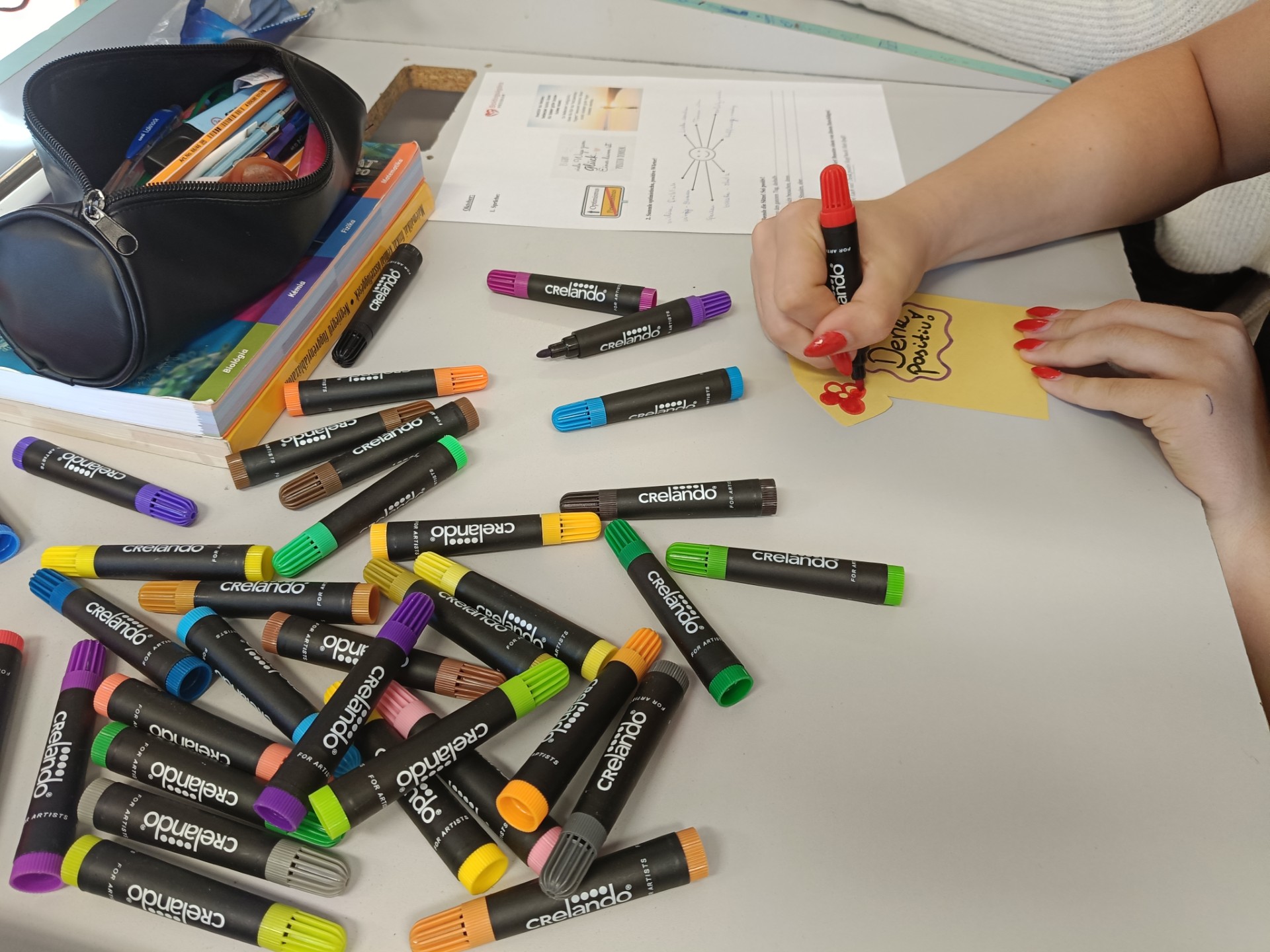 - Október 21-én tartottuk a 12.F osztályban (Szaktanár: Biró Edit tanárnő) a második Boldogságóránkat. Egy előzetes feladattal kezdtük az órát: a csoport tagjai németül beszámoltak arról, mit olvastak a neten a bohócdoktorokról, a nevetésterápiáról és a nevetőjógáról. Ezután gyakorlatban is kipróbáltuk a hónap témájának, az optimizmusnak a gyakorlását: a diákok szituációs játékokat játszottak német nyelven, ahol negatív mondatokra, kellemetlen helyzetekre kellett pozitív, optimista válaszokat adniuk. A legjobb, legkreatívabb, legoptimistább reakciókat összegyűjtöttük és együtt megbeszéltük. Kiderült, hogy még a legrosszabb, legkellemetlenebb helyzetben is meg lehet találni a pozitívumot: ha nincs a városban internet, el lehet menni biciklizni, barátokkal találkozni, ha nem ízlik az ebéd a menzán, saját magunk is főzhetünk valamit, amit szeretünk, ha rossz jegyet kapunk egy tantárgyból, ez több tanulásra ösztönözhet bennünket. Az óra végén ismét a mesterséges intelligencia segítségével oldottunk meg egy feladatot: ezúttal az AI Song Generator program segítségével német nyelvű dalt alkottunk, ki lehetett választani a dal stílusát, a témáját (ezúttal természetesen az optimizmus, a pozitív gondolkodás volt a téma), sőt, még néhány szót is, amit a dalnak tartalmaznia kellett. Meghallgattuk a különböző stílusú dalokat, megállapítottuk, hogy minél jobban hasonlítottak egymásra a parancsok, amit megfogalmaztunk, annál inkább megegyeztek az eredményként kapott dalok.
