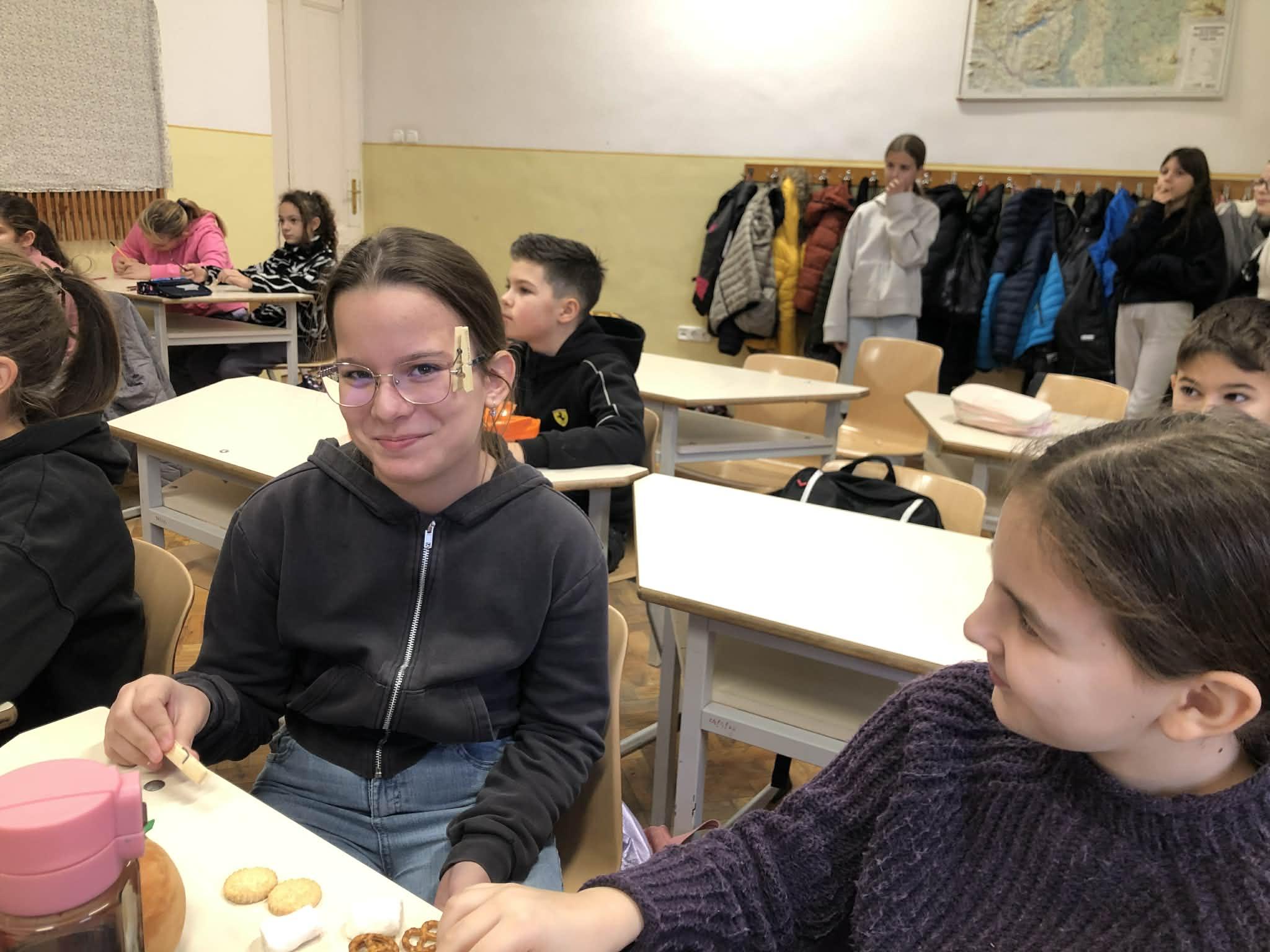 Bedéné Fodor Virág (az 5.f osztályfőnöke): Novemberben a társas kapcsolatokról beszélgettünk, azon belül is a támogató társas kapcsolatokról, amelyek olyan emberi kötelékek, amelyek érzelmi, információs vagy gyakorlati segítséget nyújtanak. Ide tartozik az empátia, a megértés, a bátorítás és a megbízhatóság. Ezek a kapcsolatok csökkentik a stresszt, javítják a mentális és fizikai egészséget, valamint erősítik az önbizalmat és az alkalmazkodóképességet. Fejlesztésük tudatos figyelmet igényel: fontos a nyílt és őszinte kommunikáció, az aktív hallgatás, a kölcsönösség és a határok tisztelete. A rendszeres kapcsolattartás, a közös élmények, valamint a konfliktusok konstruktív kezelése mind hozzájárulnak az erősebb, támogatóbb kapcsolatok kialakításához és fenntartásához. Az osztályfőnöki óra keretében a csipesz játékkal próbáltam érzékenyíteni a gyerekeket az egymásra való odafigyelésben, amelynek voltak természetesen árnyoldalai is, hiszen a félénkebb résztvevők háttérbe szorultak és előfordult, hogy valaki egyáltalán nem kapott csipesszel megerősített elismerést társaitól. Mindazonáltal úgy érzem, hogy sikerült erősíteni az együttműködési készséget, valamint az empátiát és a csapatszellemet, ugyanis aki elsőre nem kapott csipeszt, annak utólag társai adtak és megvigasztalták és biztosították barátságukról.