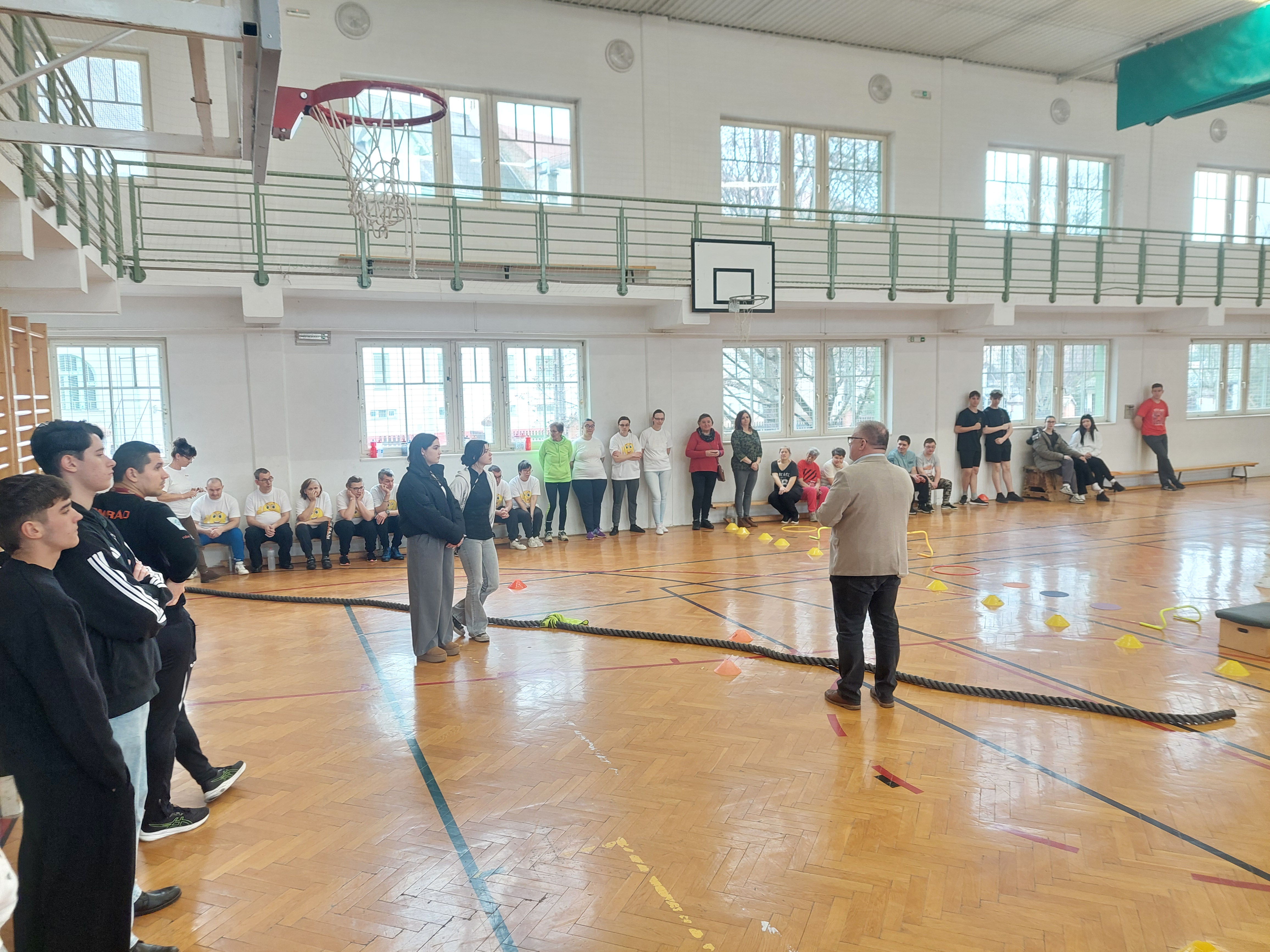 Itt nem igazán a versenyen volt a hangsúly, hanem a testmozgáson. Huszák Béla Tanár Úr vezette le az eseményt.