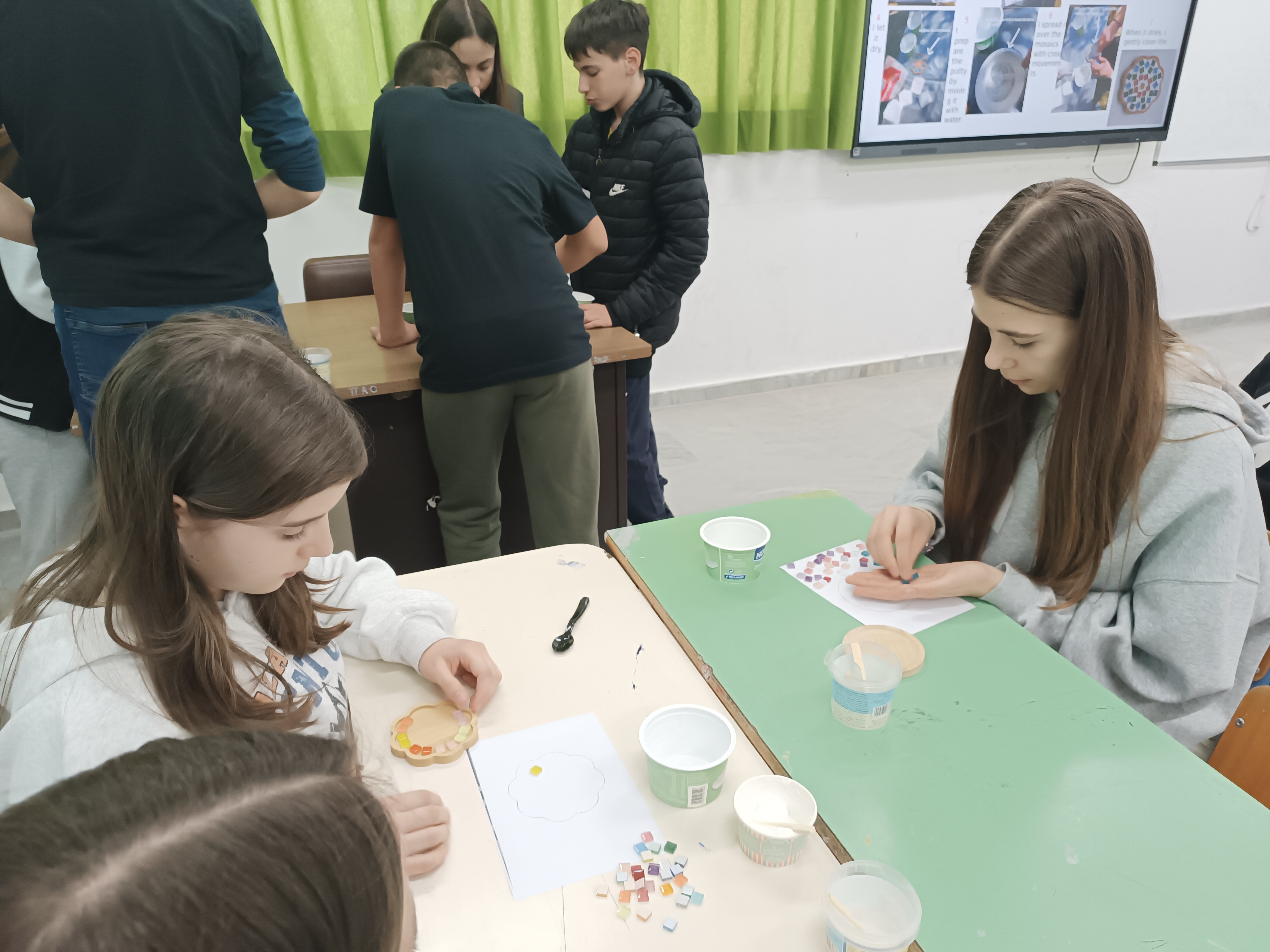 A program során számos érdekes és kreatív foglalkozáson vettünk részt. Egy mozaikkészítő workshopon saját alkotásokat készítettünk, miközben a görög művészet hagyományaival is megismerkedtünk. Készítettünk „martaki” karkötőt is, amely a tavaszhoz kapcsolódó helyi hagyomány. Egy közös főzőfoglalkozás során pedig betekintést nyertünk a görög konyha világába, de a magyar konyhaművészet bemutatása sem maradhatott el. Az iskolai programok keretében részt vettünk egy görög irodalomórán, valamint különböző projektfeladatokban dolgoztunk együtt nemzetközi csoportokban. Megismerkedtünk Aiszóposz történeteivel, és közösen dolgoztunk fel különböző témákat. Egy közös mese is született, melyet a résztvevők írtak meg. Természetesen mi másról is szólhatott a mese, mint a szabadságról, elfogadásról, közös felelősségvállalásról és a mindennapi apróságok fontosságáról.
