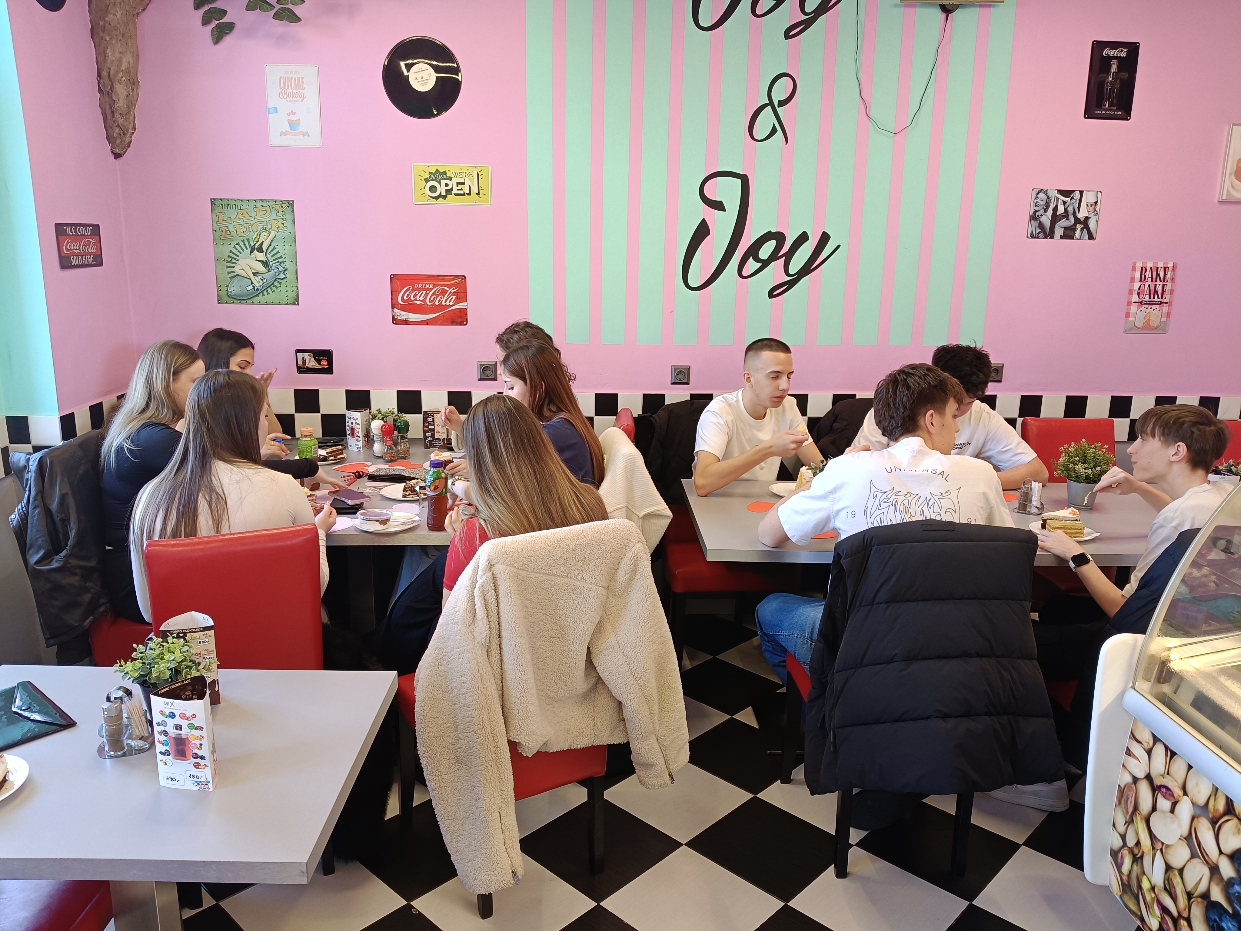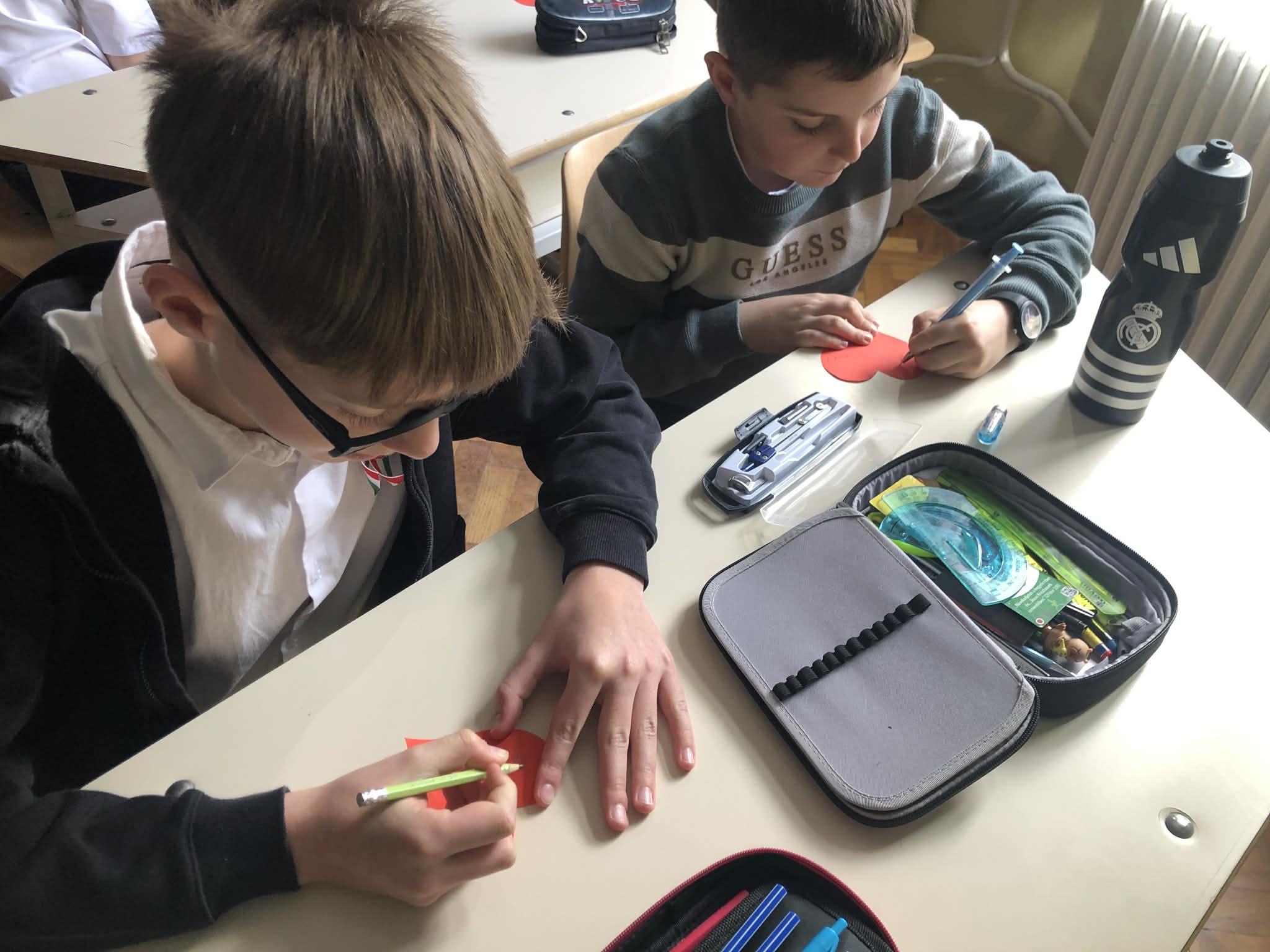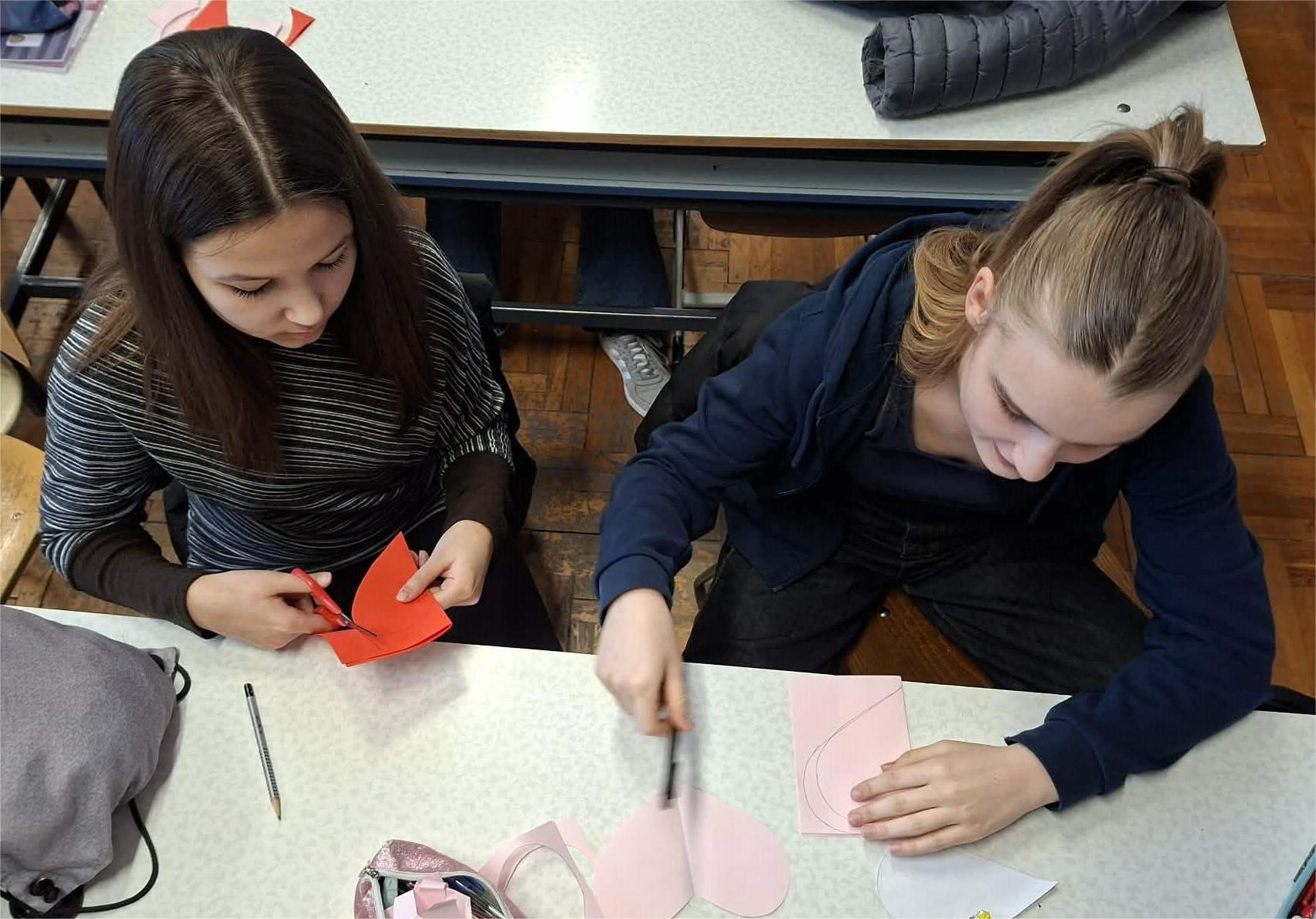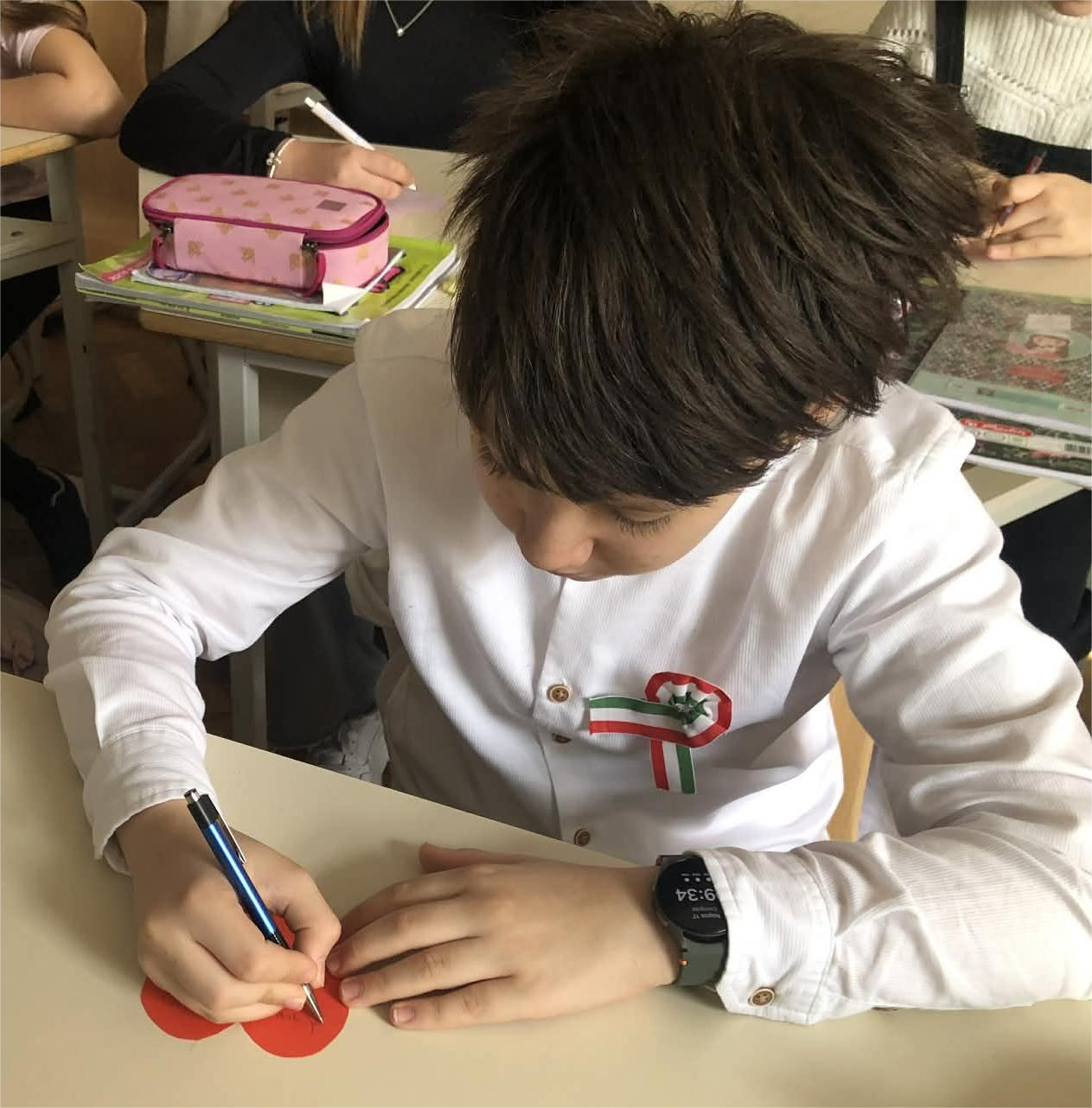 12.F osztály, németes csoport – Biró Edit tanárnő: Március az apró örömök élvezetének hónapja, ezért a boldogságórán ezzel a témával foglalkoztunk. Először megnéztünk egy rövid, német nyelvű videót arról, miért fontos észrevenni a hétköznapok apró, boldog pillanatait. Egy kis trükköt is tanultunk a filmből: ha minden reggel egy marék gyöngyöt, vagy üveggolyót rakunk az egyik zsebünkbe, és minden egyes alkalommal, amikor valamilyen öröm ért bennünket, egyet áthelyezünk a másik zsebünkbe, akkor este átgondolhatjuk (és ezzel együtt újraélhetjük), mennyi boldog pillanatunk volt a nap során. Ezután a diákok németül elmondták, mi minden okoz nekik örömet, mi az, ami boldoggá teszi őket. Sok minden szóba került, az olvasástól a zenehallgatáson át az iskolai sikerekig és a barátokkal eltöltött időig. Ezután a Költészet Világnapja tiszteletére verset írtunk, ezúttal a mesterséges intelligencia segítségével. A tavaly már megtanult cinquain és haiku versformák után most a limerick nevű versformával ismerkedtünk meg. Mivel a következő nap ünnepeltük iskolánkban a Boldogság Világnapját, színes papírokból szíveket vágtunk ki, amelyekre motiváló üzeneteket írtunk magyar és német nyelven, majd ezeket a diákok átadhatták társaiknak, barátaiknak, ismerőseiknek.