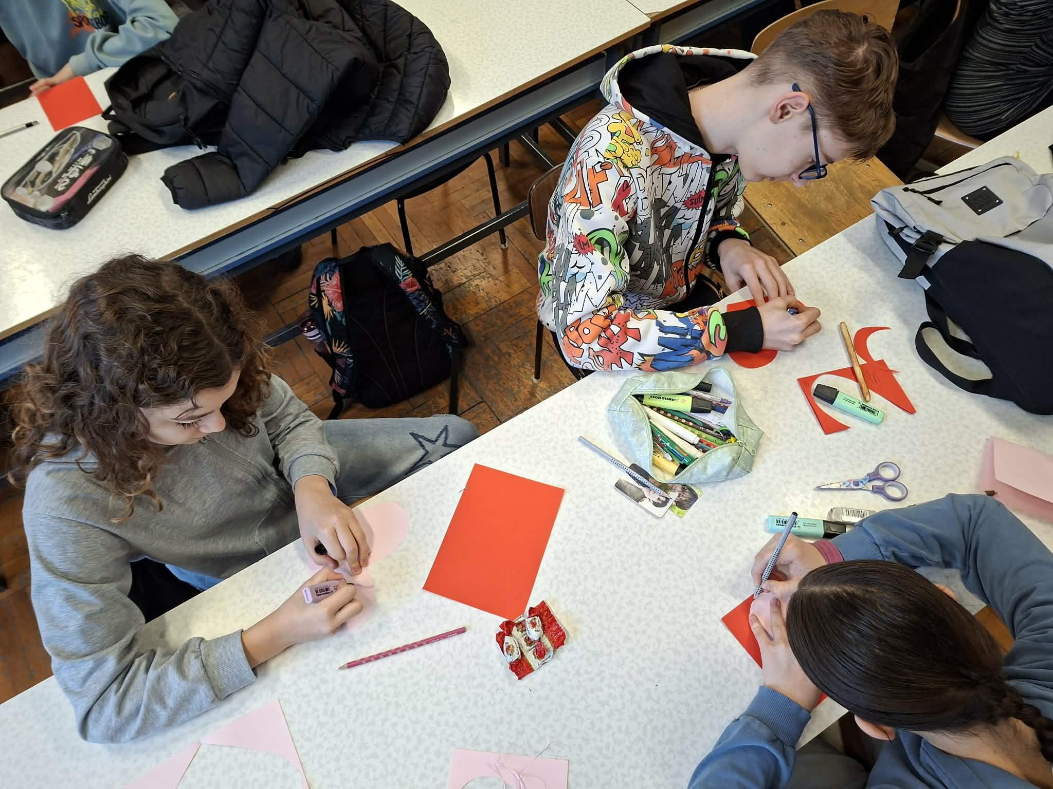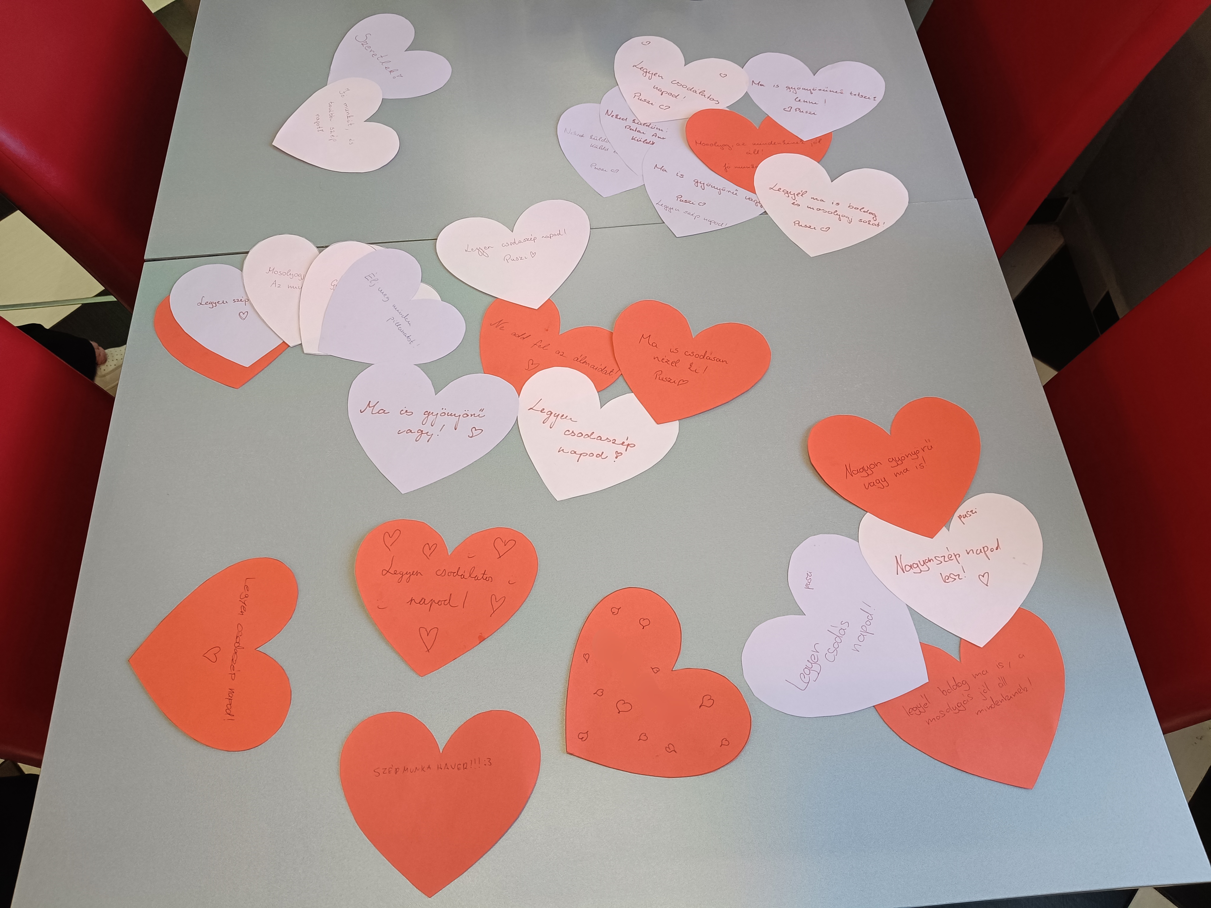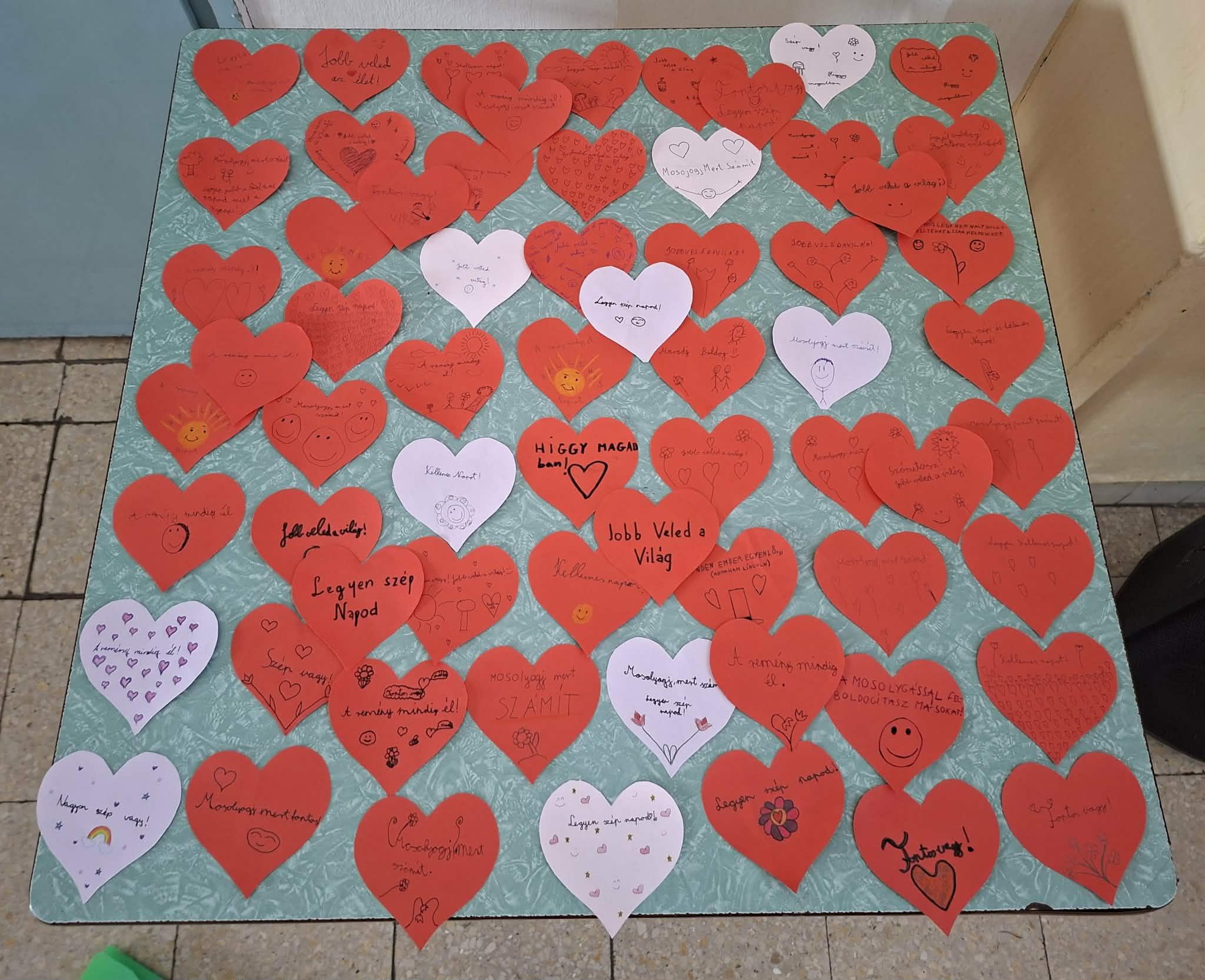 A batsányis diákok osztályfőnökeikkel és szaktanáraikkal intézményi szinten kapcsolódtak ehhez a témához, így előzetesen is készültek közös feladatokkal, hogy lehetőleg minél több ismerős és ismeretlen embernek szerezzenek kellemes és megható pillanatokat a március 20-i nap folyamán. Az előzetes feladat az volt, hogy színes lapokból vágjanak ki a diákjaink szívecskéket és díszítsék is ki őket saját ötletekkel, rajzokkal, majd bátorító gondolatokat is írjanak ezekbe.